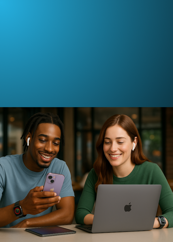 Wyobraź sobie sprzęt, który „dogaduje się” sam — zaczynasz na iPhonie, kończysz na Macu, a zdjęcia, pliki i notatki czekają już na iPadzie dzięki iCloud. Z Apple również oszczędzasz czas: AirDrop, Handoff, odblokowanie Maca zegarkiem i automatyczne przełączanie AirPods sprawiają, że wszystko dzieje się po prostu szybciej. Warto wiedzieć, że Twoje dane są naprawdę Twoje — szyfrowanie end-to-end, App Tracking Transparency i „Znajdź” dbają o prywatność i spokój.