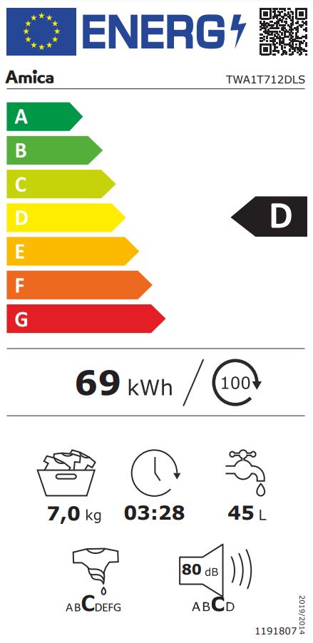 Pralka wolnostojąca Amica TWA1T712DLS 7kg 1200rpm