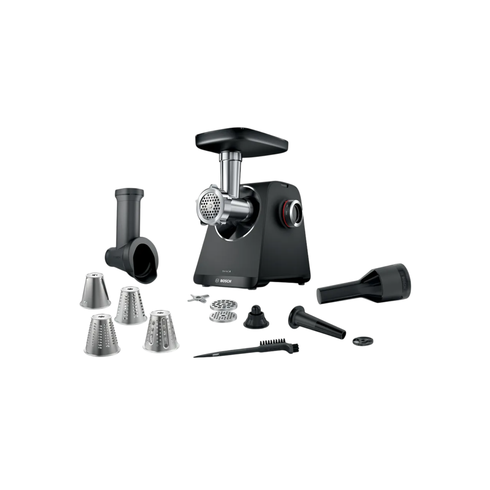 Bosch MFWS440B to wydajna maszynka o mocy 1900 W i przepustowości do 2,5 kg/min. Wyposażona w funkcję rewersu, przekładnię planetarną oraz 3 sitka, nasadkę do kiełbas i kebbe. Posiada praktyczny schowek na akcesoria i kabel oraz elementy nadające się do zmywarki.