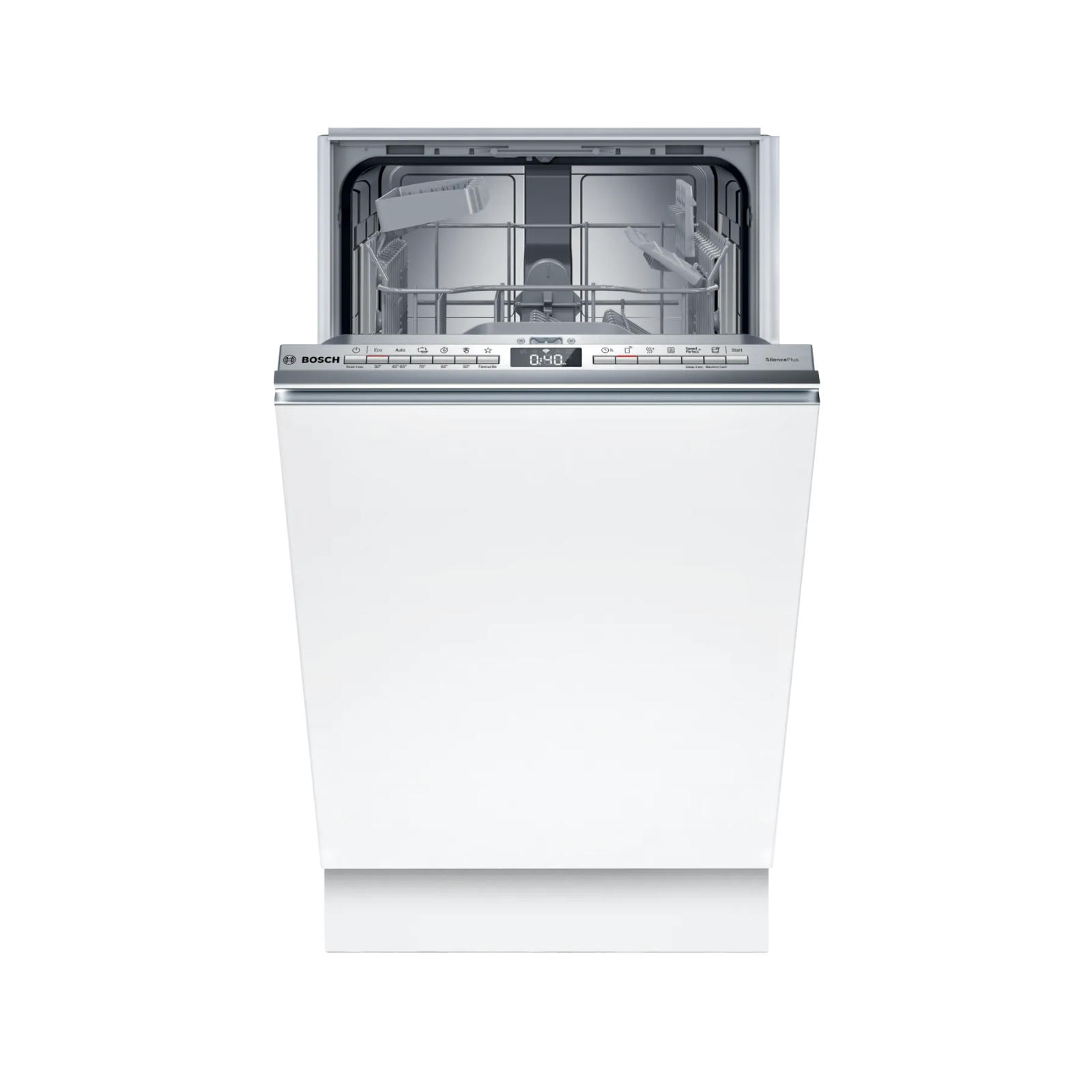 Bosch SPV4HKX10E to zmywarka do zabudowy o szerokości 45 cm, oferująca 6 programów, funkcję ExtraDry oraz zdalne sterowanie przez aplikację Home Connect. Wyposażona w silnik EcoSilence Drive, system AquaStop i regulowany kosz VarioFlex, zapewnia skuteczne i ciche zmywanie.