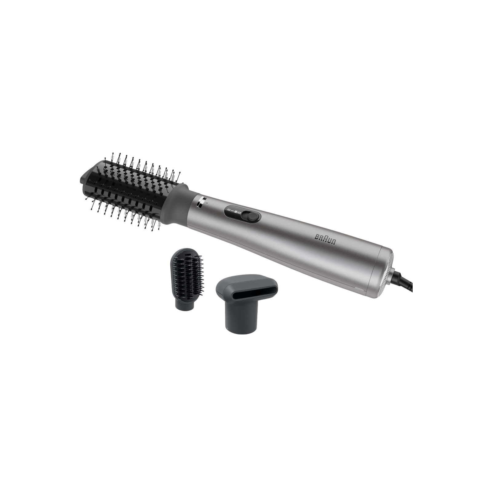 Suszarko-lokówka Braun łączy precyzję działania z lekkością konstrukcji i pełną swobodą ruchu. Długi, 220-centymetrowy przewód ułatwia stylizację z każdej strony, a starannie zaprojektowane akcesoria zapewniają maksymalną kontrolę. Obudowa w jasnoszarym satynowym wykończeniu z chromowanymi detalami nadaje urządzeniu nowoczesny i stylowy charakter.