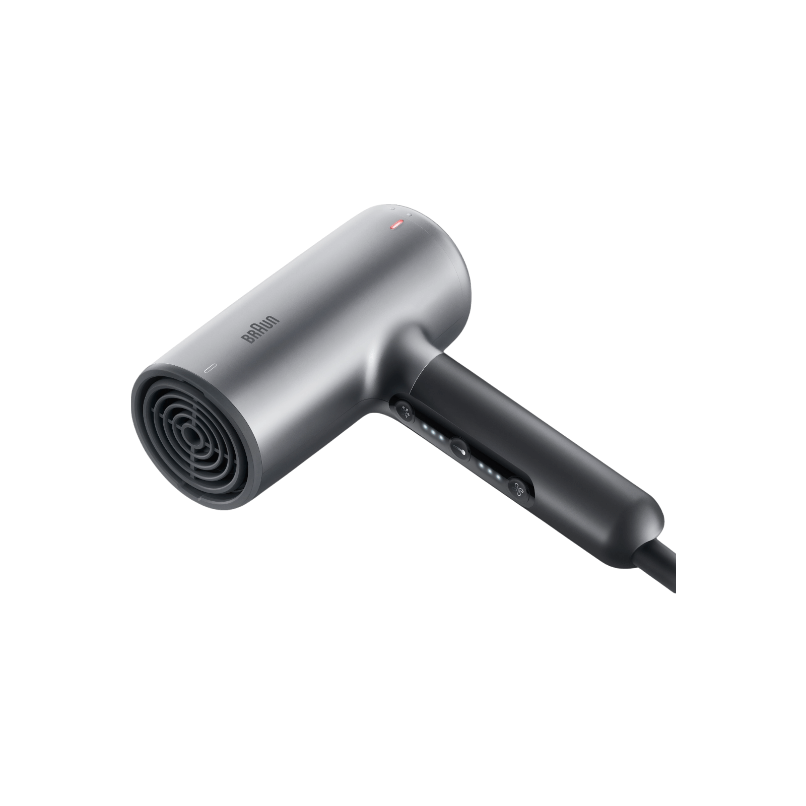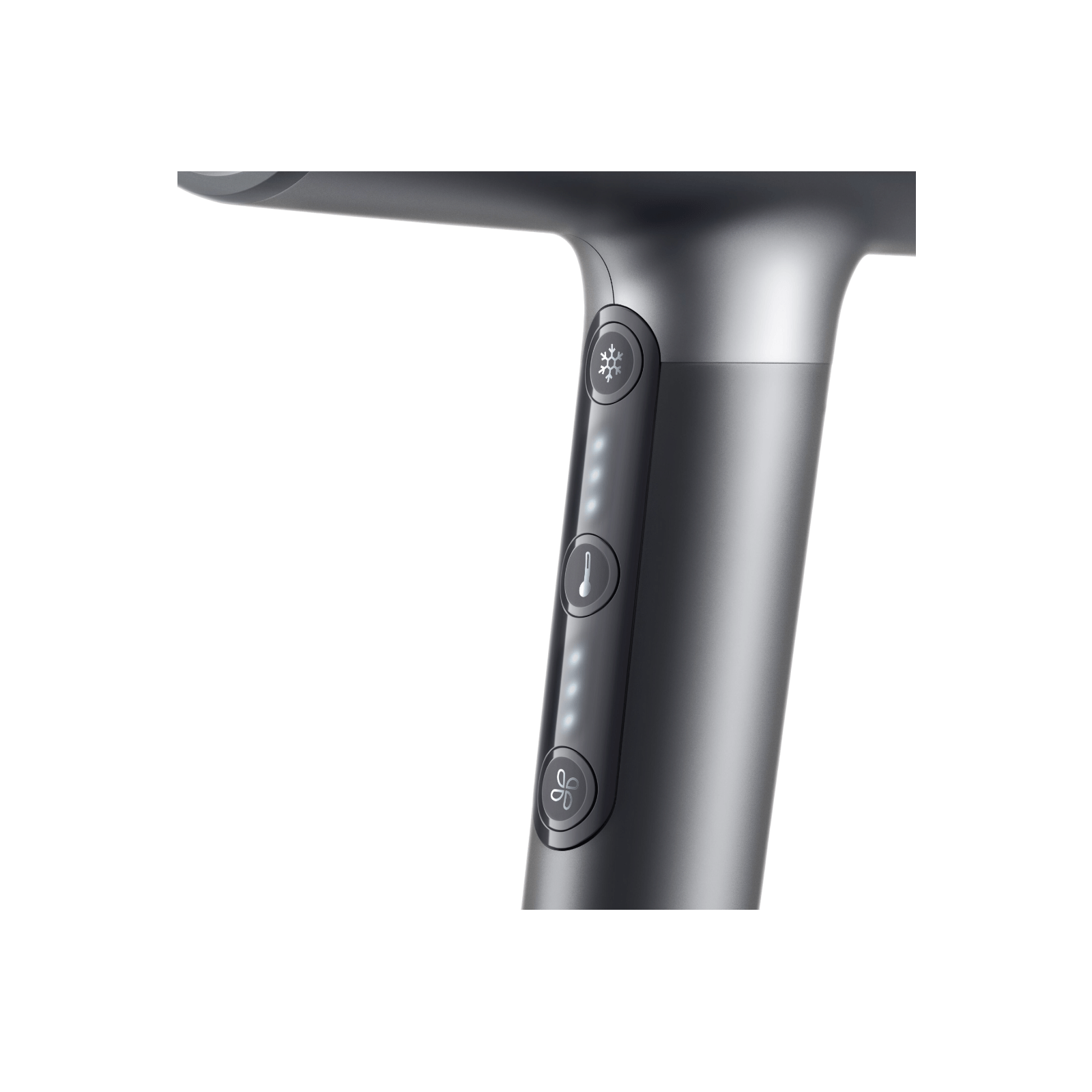Suszarka zachwyca lekkością, idealnym wyważeniem i dopracowanymi detalami, które podnoszą komfort codziennego użytkowania. Jej nowoczesny design, podkreślony kontrastującymi metalicznymi akcentami, łączy funkcjonalność z elegancją, tworząc urządzenie nie tylko praktyczne, ale i wyjątkowo estetyczne.