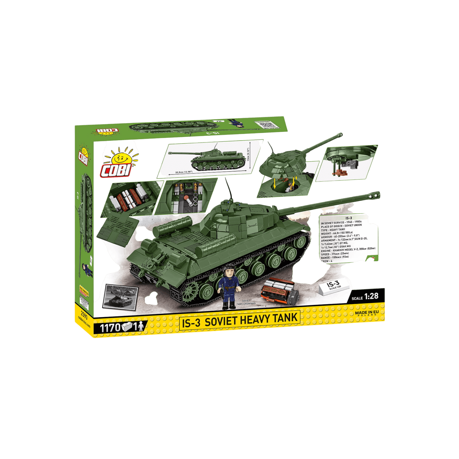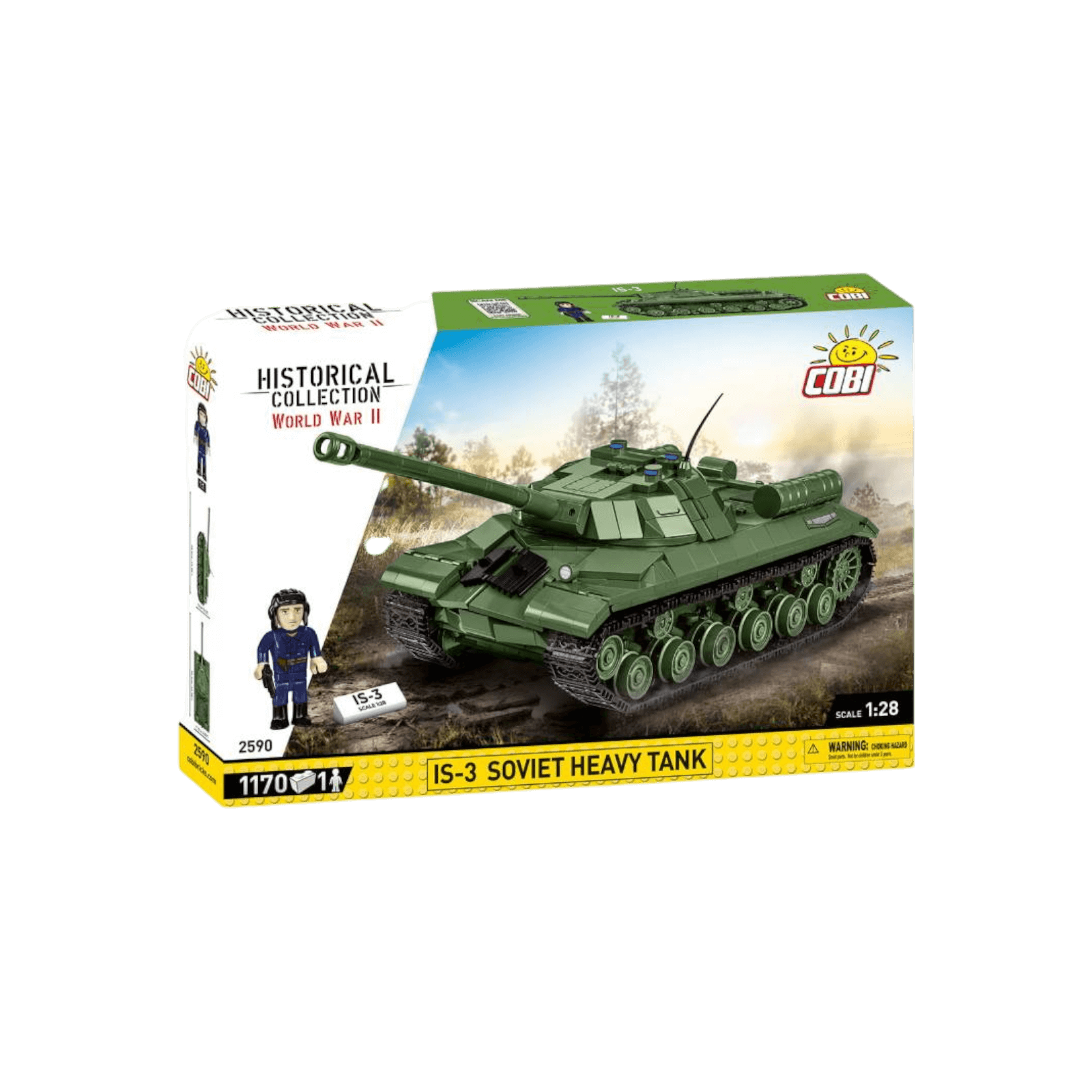 Cobi IS‑3 Soviet Heavy Tank to wierna replika słynnego radzieckiego czołgu w skali 1:28. Składa się z 1170 elementów, mierzy 35,5 cm długości i oferuje ruchome gąsienice, obrotową wieżę, unoszoną lufę, zdejmowany właz serwisowy z repliką silnika oraz peryskopy na wieży.