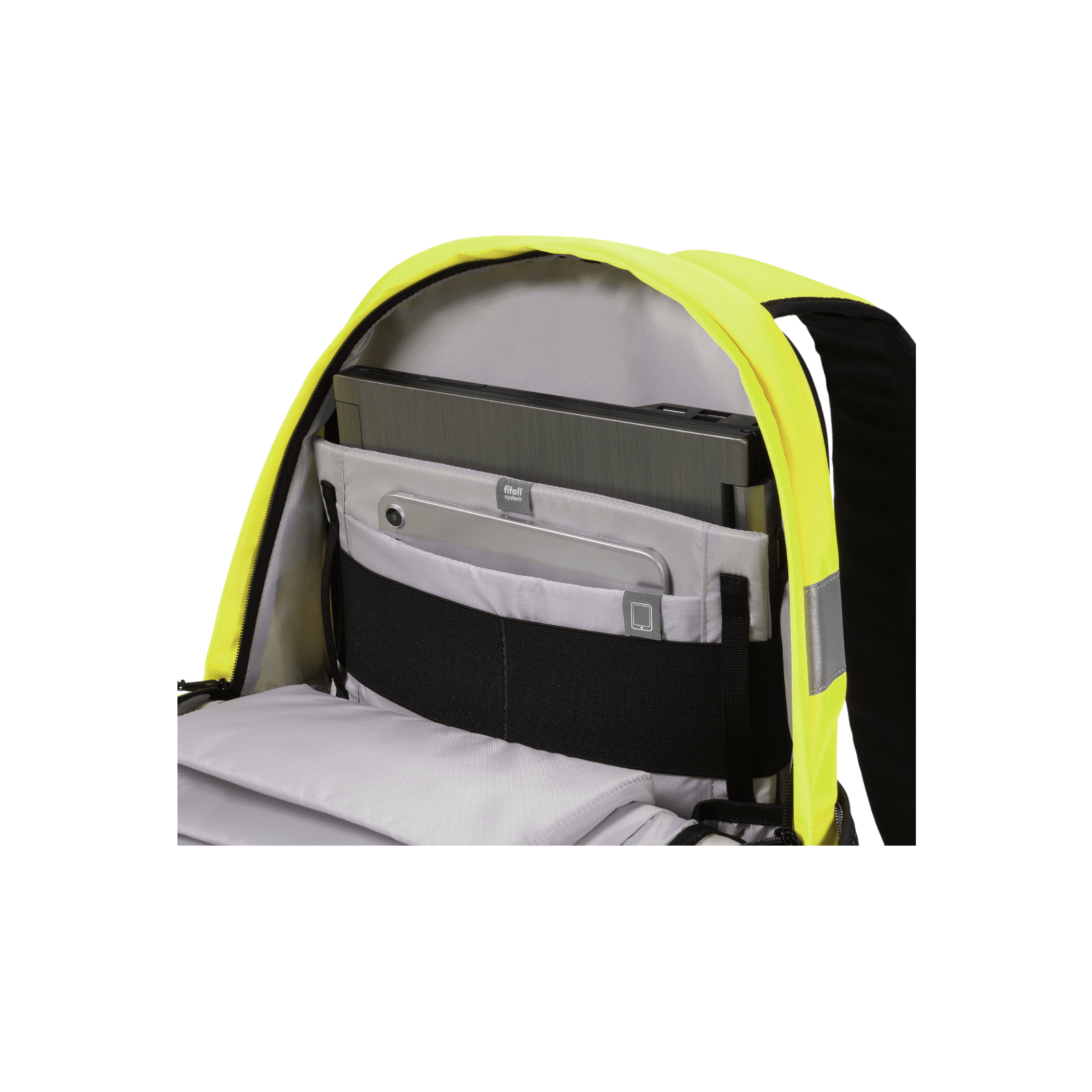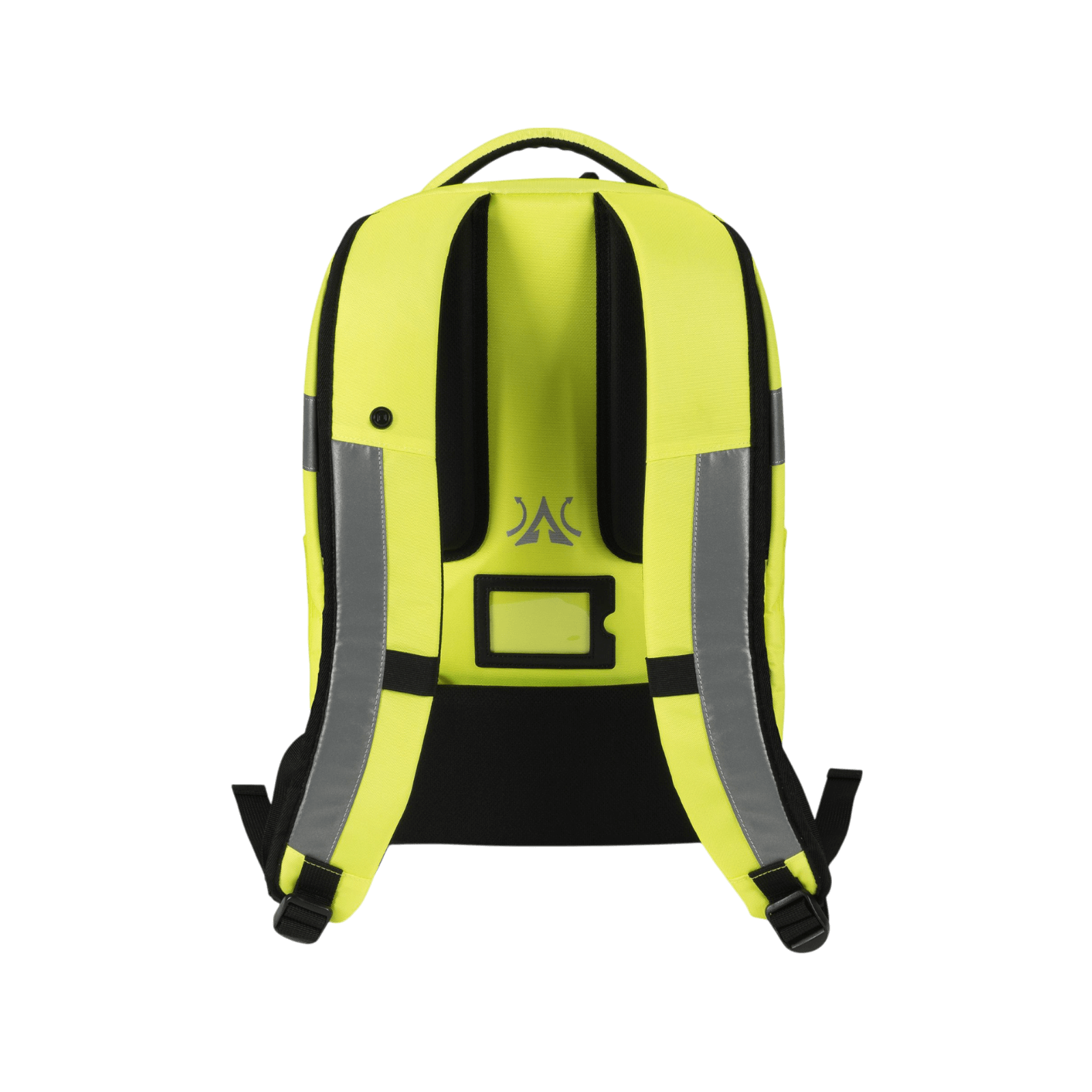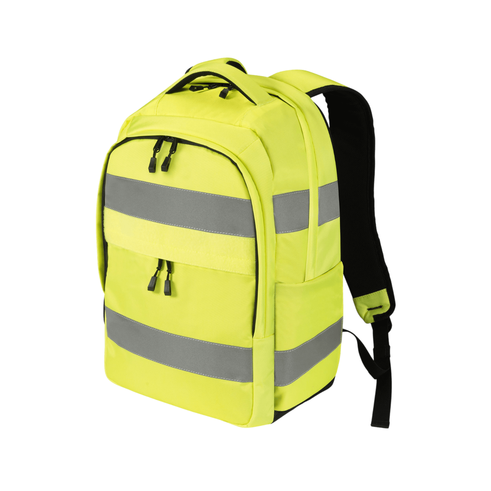Plecak DICOTA HI-VIS 25l 15,6" w kolorze żółtym zapewnia widoczność i bezpieczeństwo w terenie. Wykonany z odblaskowego materiału zgodnego z normą EN ISO 20471:2013, oferuje 25 l pojemności, system Fit-All dla laptopa, przegrody na akcesoria oraz ergonomiczne szelki i wentylowany panel tylni dla maksymalnego komfortu.