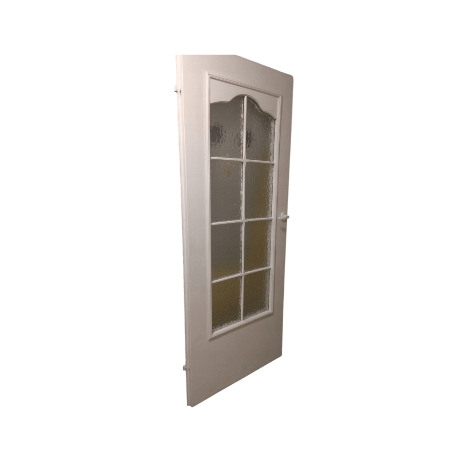 Drzwi pokojowe z szybą były niemal obowiązkowym wyposażeniem mieszkań w latach 90. Ich drewniana rama / płyta sklejka i ozdobne przeszklenie dodawały wnętrzom swoistego uroku, a jednocześnie pozwalały wpuścić odrobinę światła do ciemniejszych pomieszczeń. W wielu domach to właśnie one stanowiły granicę między światem dorosłych a dziecięcymi zabawami.