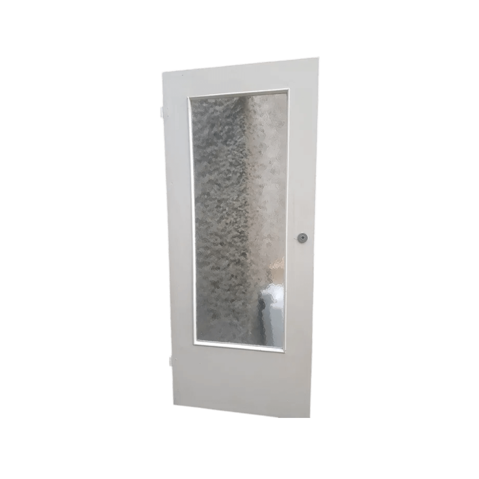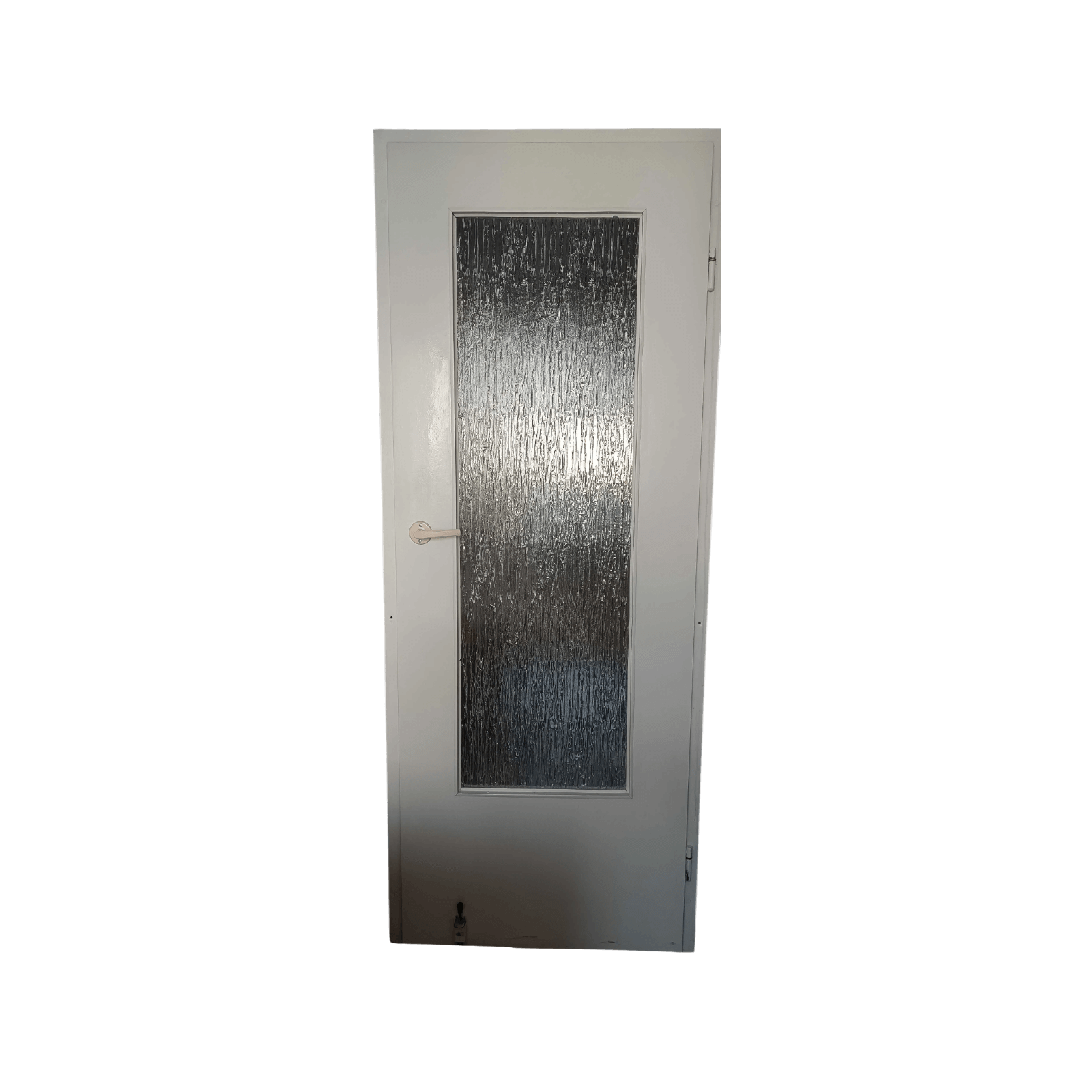 Pełne drzwi z wstawioną szybą (najczęściej pojedynczą, mleczną, ryflowaną lub z ozdobnym wzorem) |