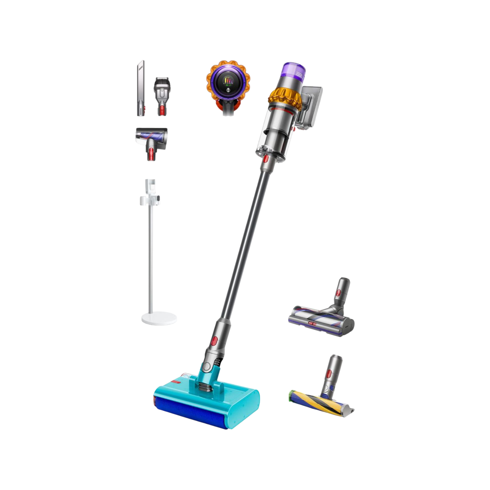 Dyson V15s Detect™ Submarine ma lekką konstrukcję, zwrotną elektroszczotkę i bezdotykowy system opróżniania pojemnika. Wszystkie elementy można myć pod wodą, a stacja dokująca umożliwia wygodne przechowywanie i ładowanie.