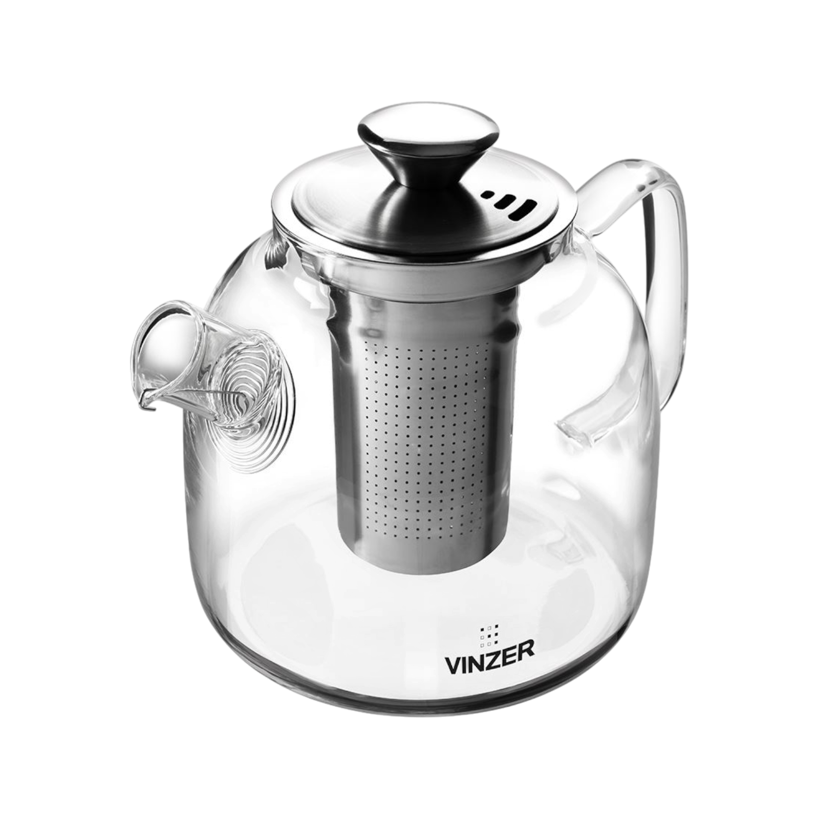 Żaroodporny szklany czajniczek VINZER 89107 z filtrem ze stali nierdzewnej umożliwia bezpieczne zaparzanie herbaty. Przezroczyste szkło borokrzemianowe pozwala obserwować proces parzenia, a nowoczesny design łączy funkcjonalność z elegancją w każdej kuchni.