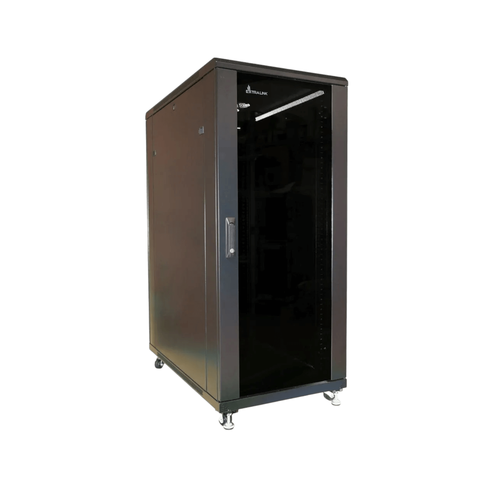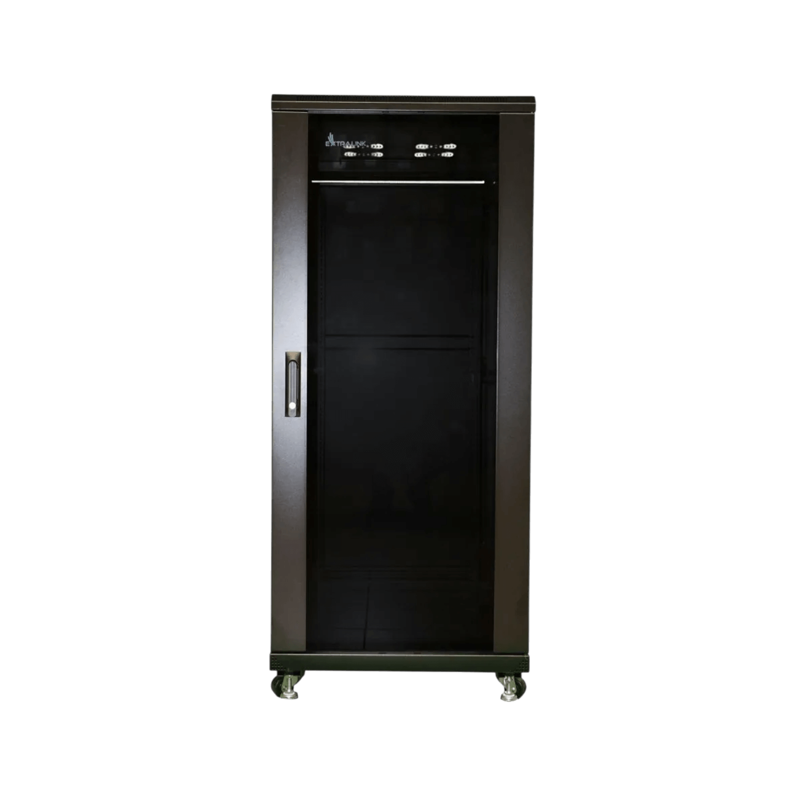 Wykonana z wysokiej jakości stali walcowanej na zimno, szafa Extralink gwarantuje wyjątkową trwałość i odporność na uszkodzenia mechaniczne. Przednie drzwi z hartowanego szkła nie tylko zapewniają elegancki wygląd, ale również umożliwiają szybki podgląd urządzeń bez konieczności otwierania szafy. Dodatkowo, solidna konstrukcja zapewnia stabilność, nawet przy pełnym obciążeniu sprzętem. Maksymalne obciążenie to 1000 kg.
