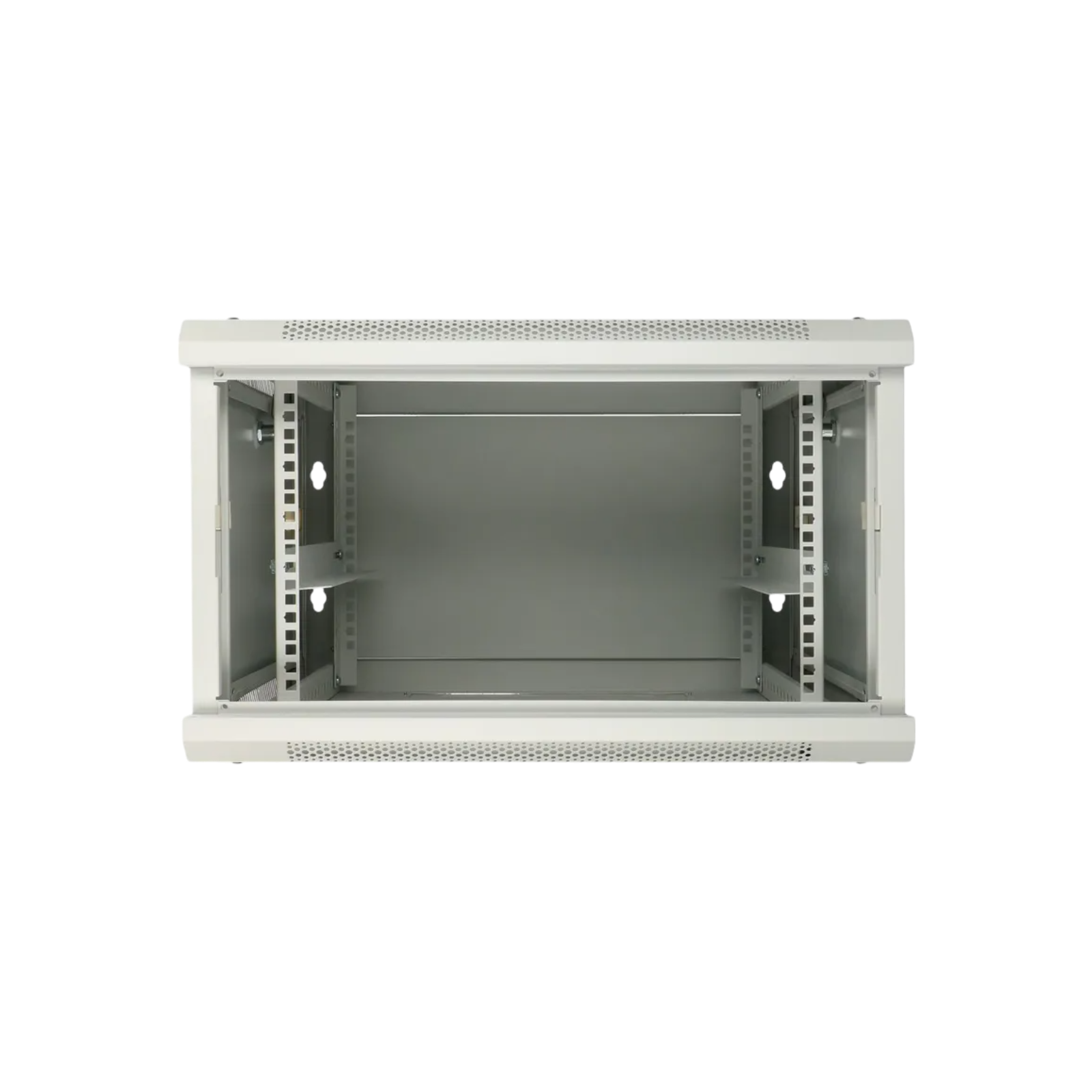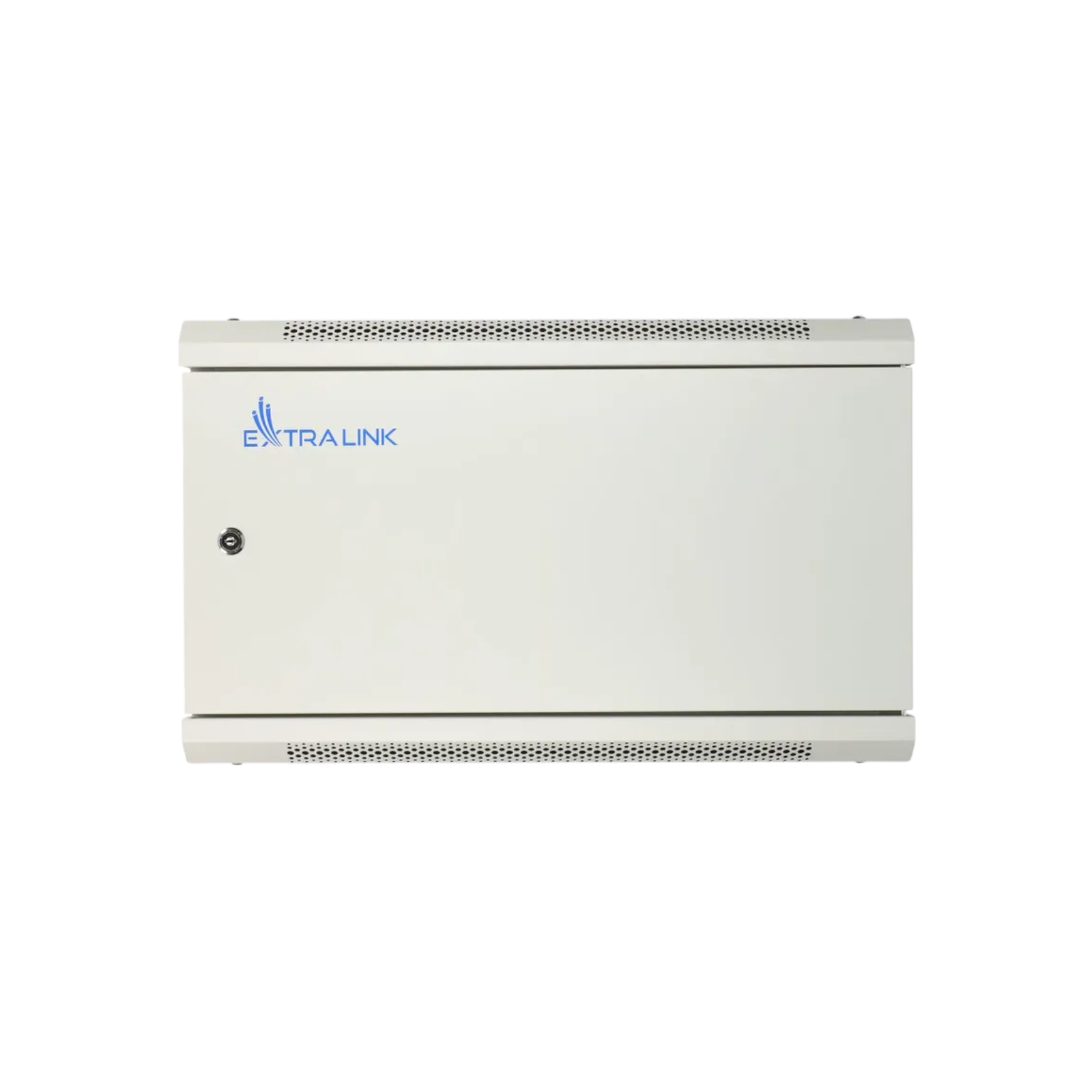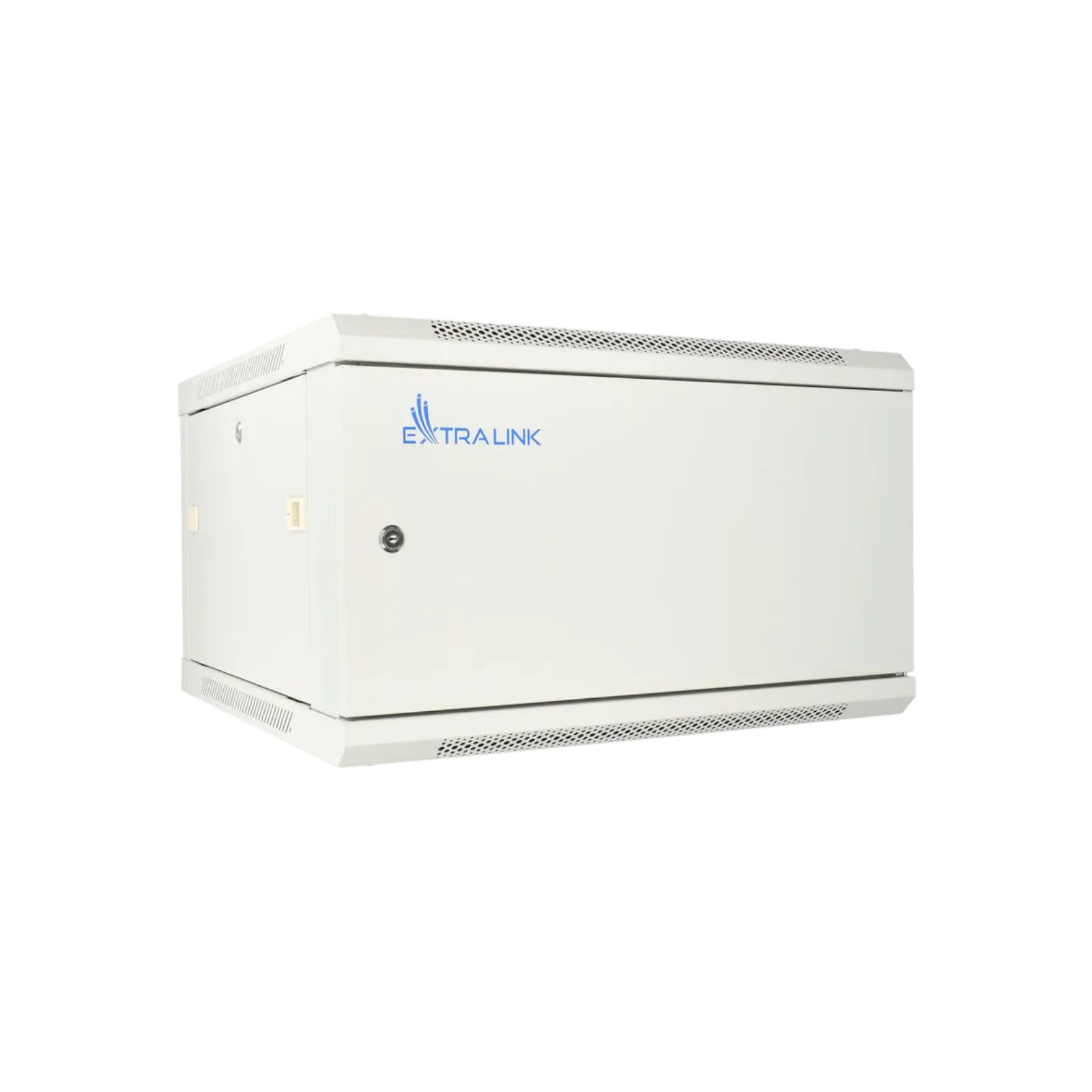 Szafa rack Extralink 6U 600x600 mm ASP to wisząca, szara konstrukcja przeznaczona do biur, serwerowni i systemów CCTV. Wyposażona w blaszane drzwi, zdejmowane panele boczne i otwory na okablowanie, zapewnia wygodny montaż i ochronę urządzeń w standardzie 19".