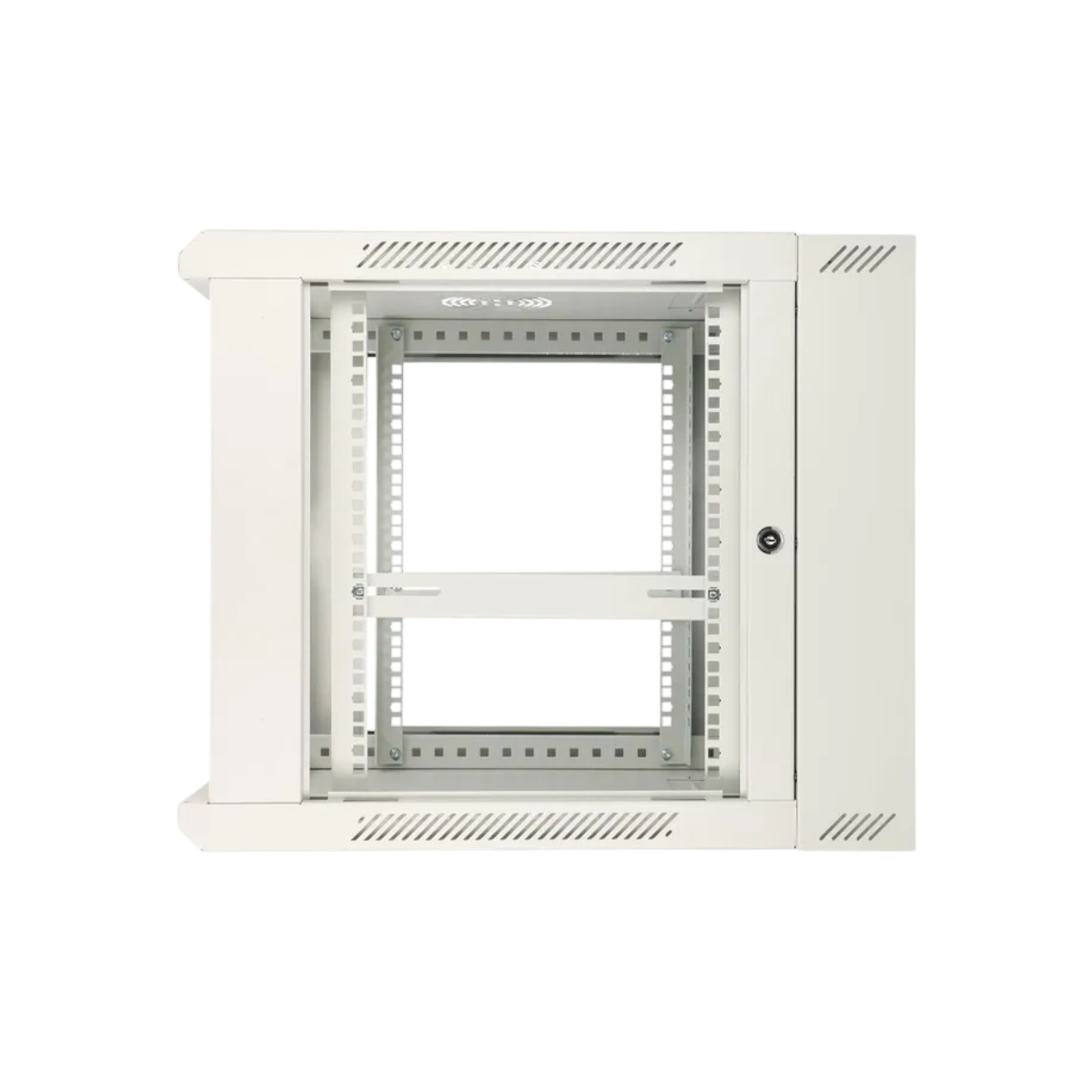 Szyna pionowa z oznaczeniami wysokości ułatwia montaż urządzeń, a miejsca na wentylatory na górze szafy umożliwiają skuteczną wentylację. Przepusty kablowe na górze i dole szafy zapewniają estetyczne i łatwe zarządzanie okablowaniem. Dzięki tym rozwiązaniom szafa nie tylko organizuje przestrzeń, ale także wspiera wydajność sprzętu. Szafę rack można opcjonalnie wyposażyć w półki, organizery kabli, akcesoria do chłodzenia i wiele więcej.