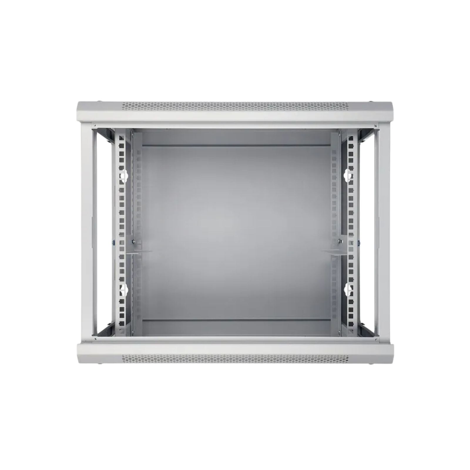 Zdejmowane panele boczne z zamkami gwarantują szybki i łatwy dostęp do zainstalowanego sprzętu, co jest niezwykle istotne podczas konserwacji lub rozbudowy systemu. Szyny z oznaczeniem wysokości 9U ułatwiają organizację urządzeń, a przepusty kablowe umożliwiają estetyczne zarządzanie przewodami, zapewniając porządek w środowisku IT. Szafę rack można opcjonalnie wyposażyć w półki, organizery kabli, akcesoria do chłodzenia i wiele więcej.