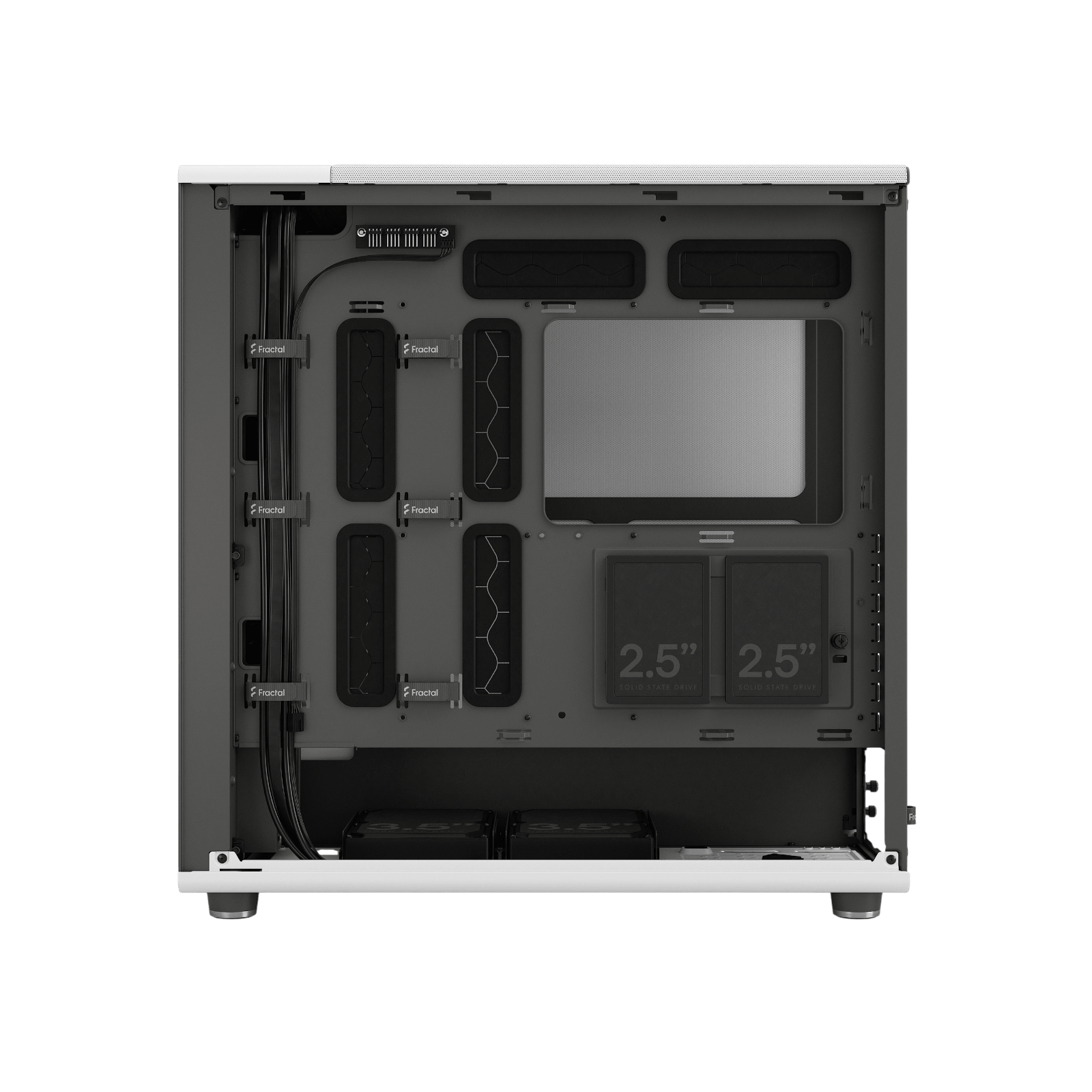 Wnętrze obudowy zostało zaprojektowane z myślą o entuzjastach sprzętu komputerowego. North XL Chalk White oferuje przestrzeń na płyty główne w formatach od Mini-ITX do E-ATX o szerokości do 330 mm, co pozwala na instalację zaawansowanych komponentów. Dodatkowo, możliwość montażu kart graficznych o długości do 413 mm oraz chłodzeń procesora o wysokości do 185 mm zapewnia elastyczność w doborze podzespołów.