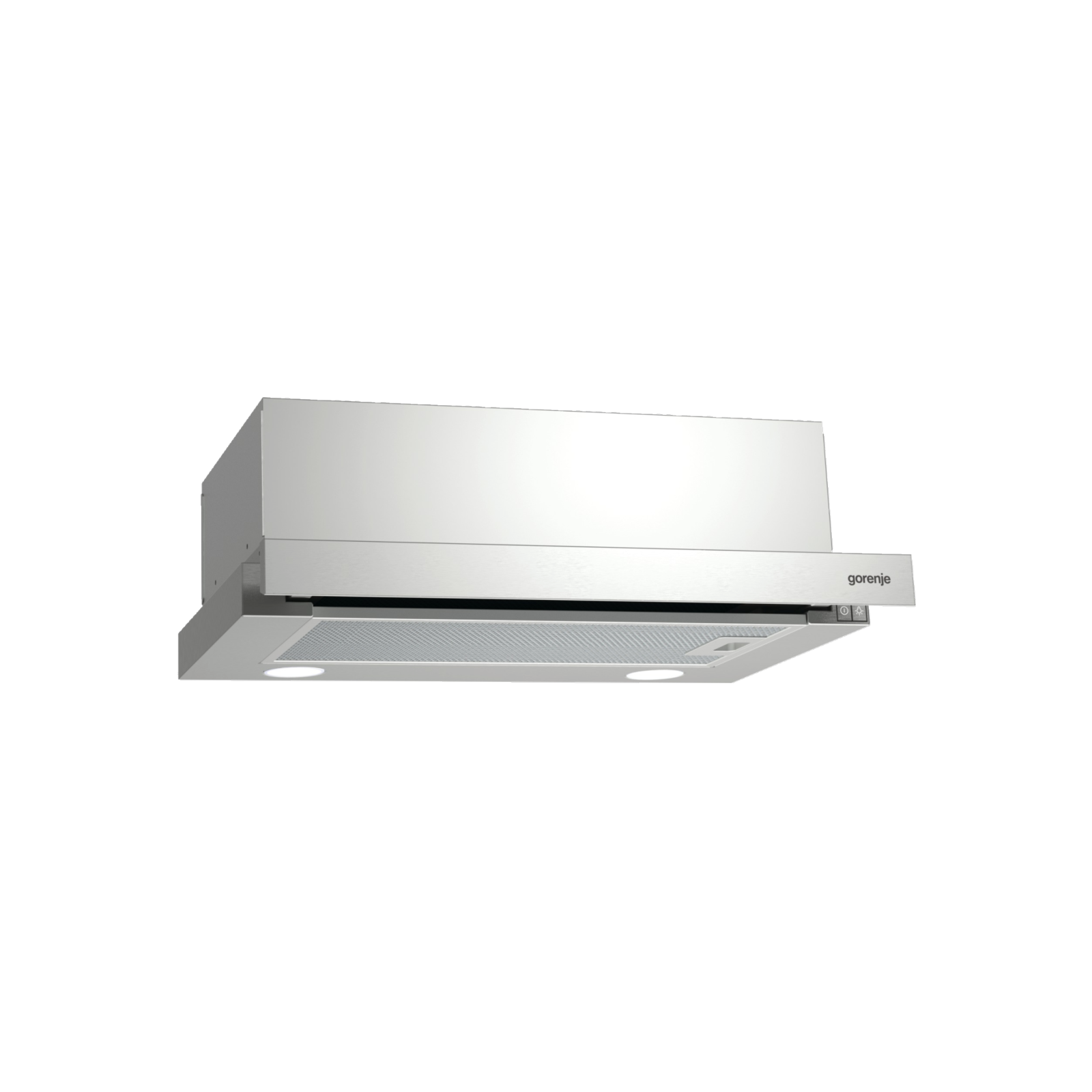 Gorenje BHP523E10X to teleskopowy okap kuchenny o szerokości 50 cm, idealny do zabudowy w mniejszych kuchniach. Dzięki wydajności do 322 m³/h skutecznie usuwa parę, zapachy i tłuszcz powstające podczas gotowania. Wyposażony w energooszczędne oświetlenie LED oraz aluminiowe filtry przeciwtłuszczowe wzmocnione pianką poliuretanową, które eliminują do 98% cząsteczek tłuszczu i innych zanieczyszczeń, zapewniając czyste powietrze w kuchni. Sterowanie mechaniczne oraz możliwość pracy w trybie wyciągu lub pochłaniacza czynią go funkcjonalnym i łatwym w obsłudze urządzeniem.