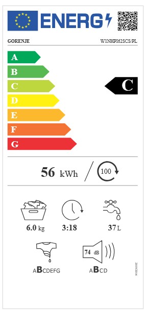 Pralka Gorenje W1NHPI62SCS/PL z 6 kg wsadem i 1200 obr./min oferuje 15 programów prania, w tym szybkie cykle i programy dla delikatnych tkanin. Posiada funkcję opóźnienia startu, zapewniając wygodę w planowaniu prania. Klasa energetyczna C gwarantuje efektywność i oszczędność energii w codziennym użytkowaniu.