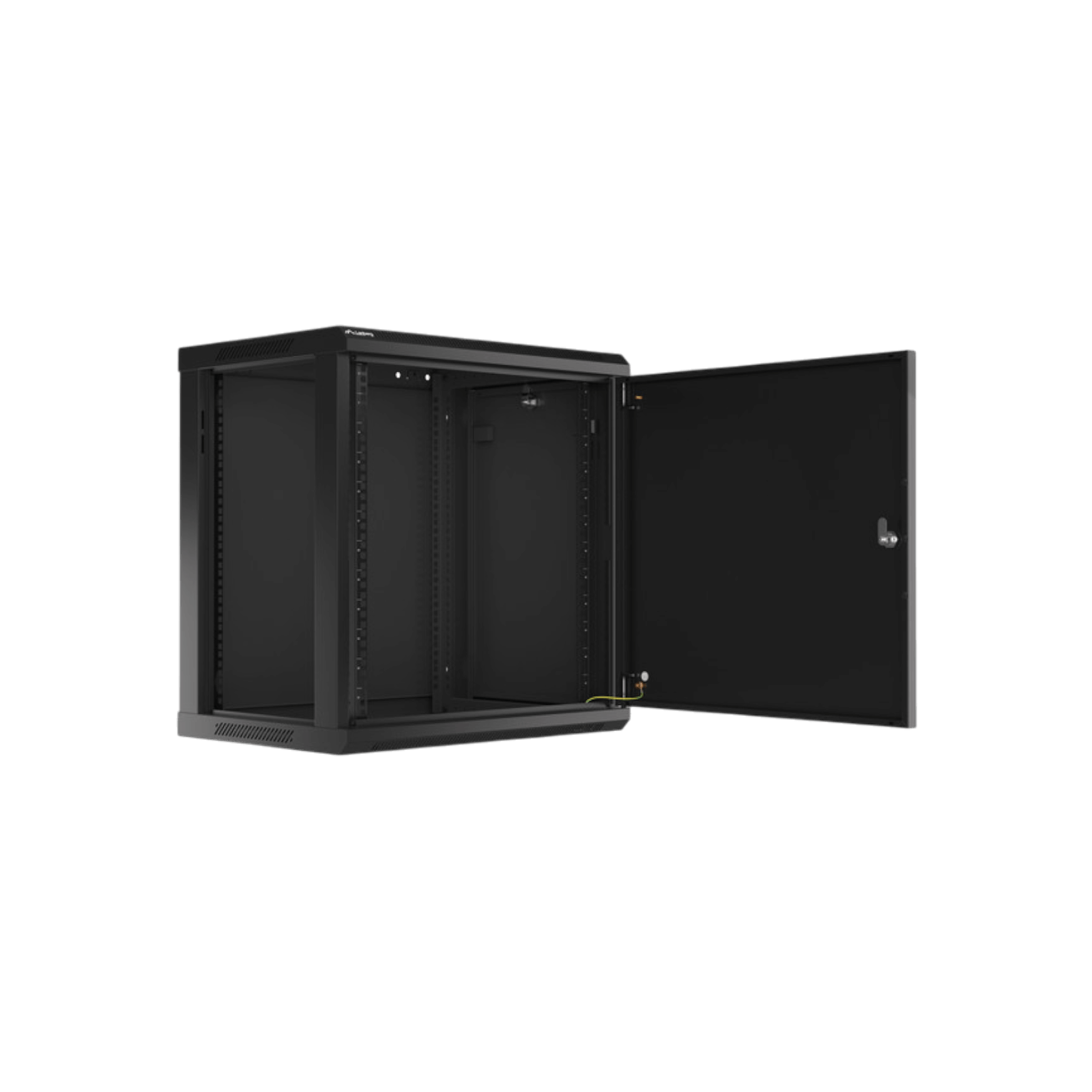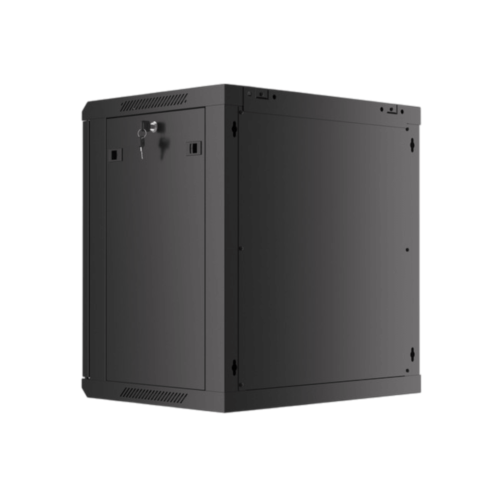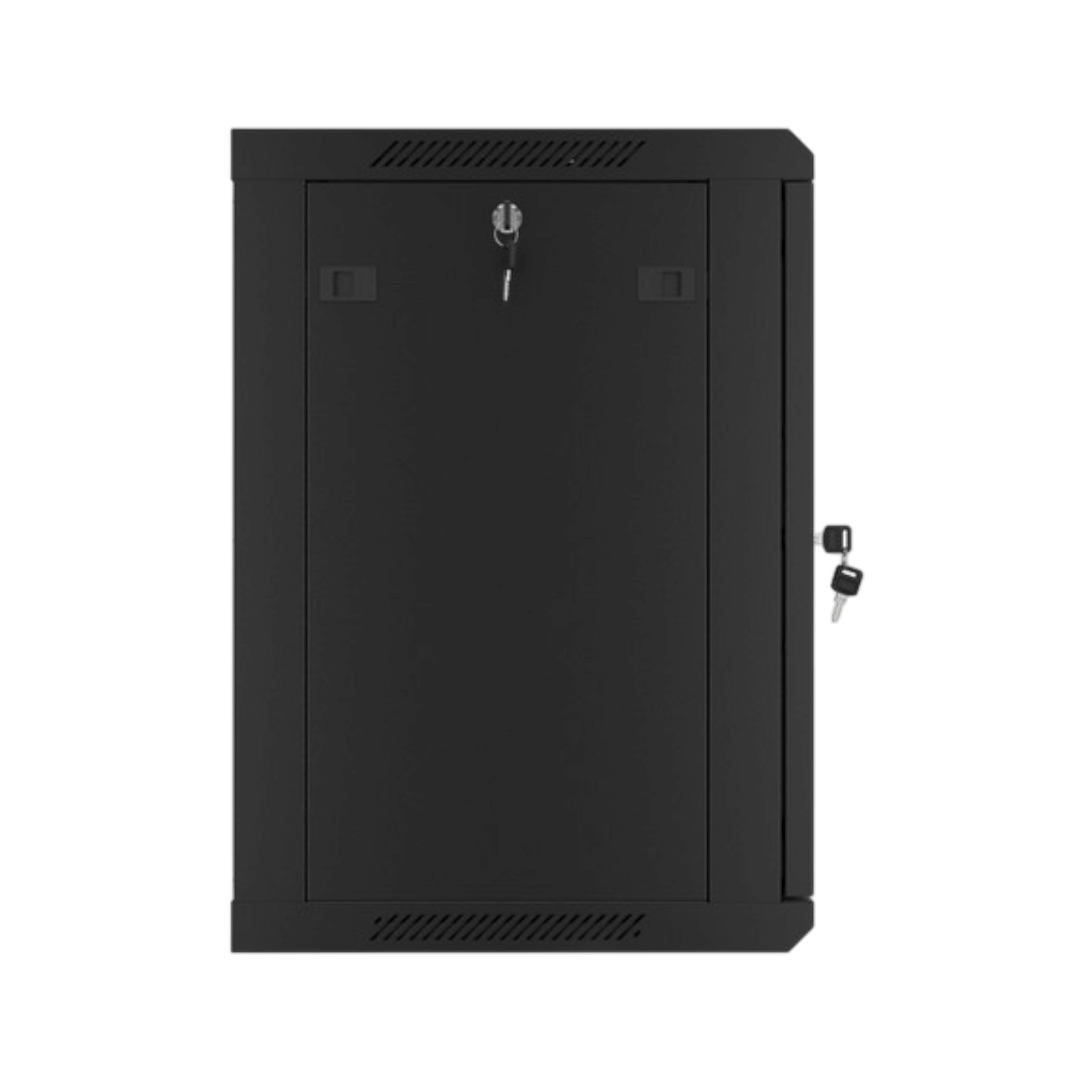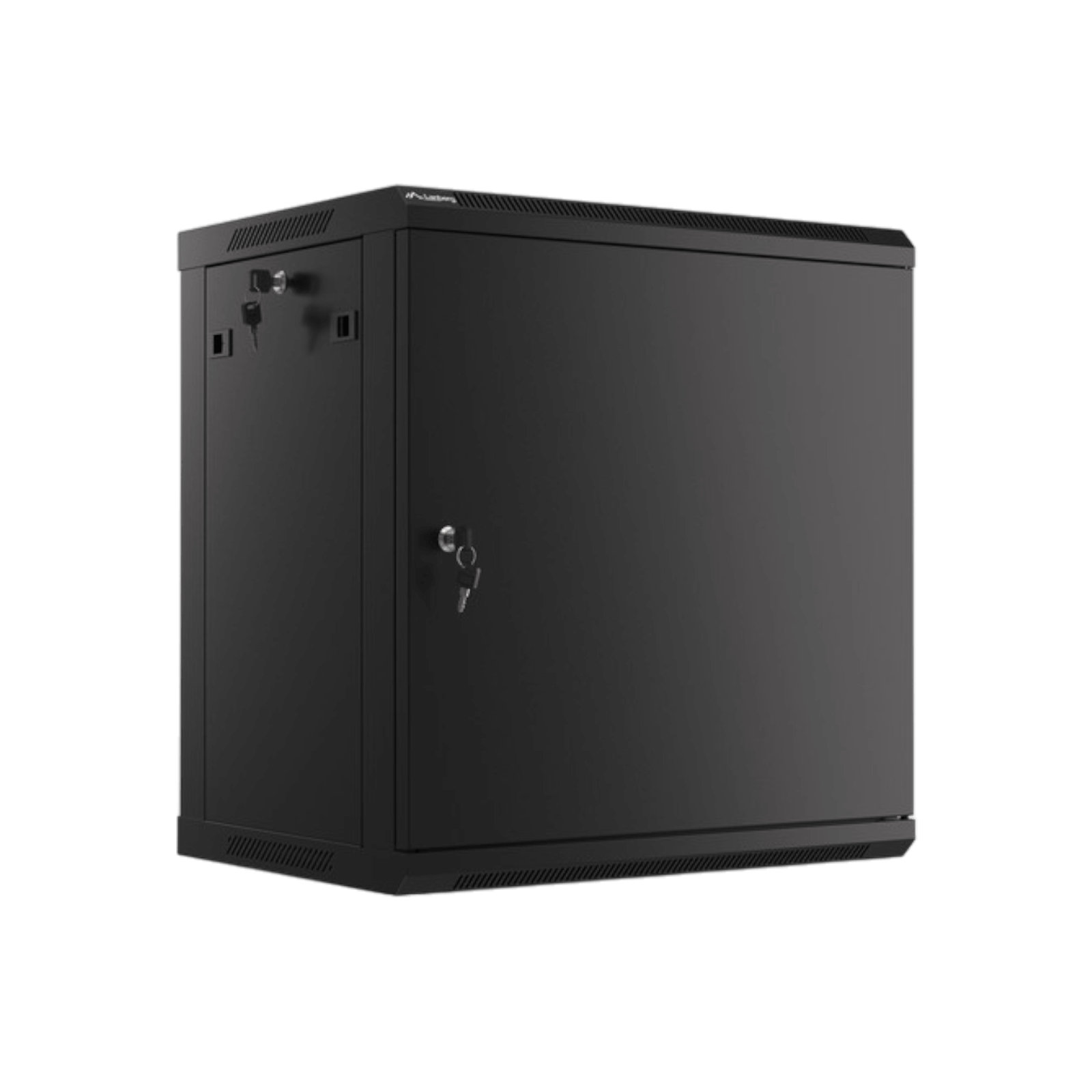 Szafa rack Lanberg 19" 12U 600x450 mm to solidna konstrukcja do montażu urządzeń IT. Metalowe drzwi z zamkiem zwiększają bezpieczeństwo, a zdejmowane panele boczne ułatwiają dostęp serwisowy. Otwory wentylacyjne umożliwiają montaż wentylatorów, a nośność do 60 kg zapewnia stabilność instalacji.