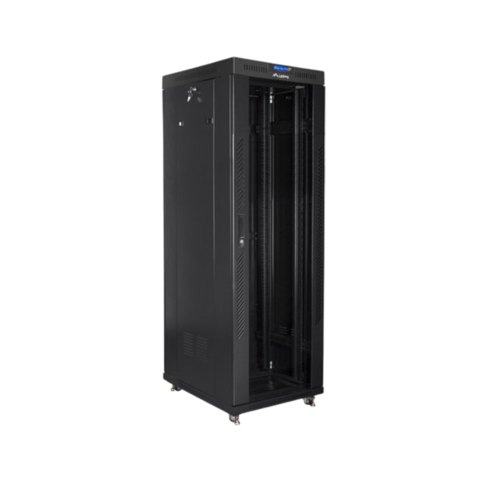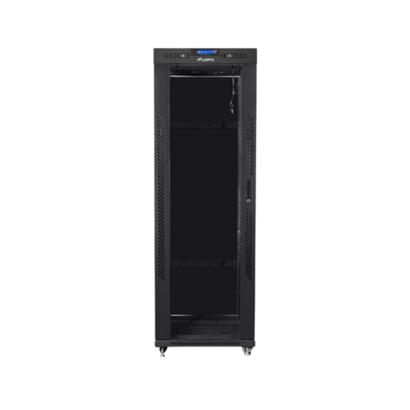 Zintegrowany panel LCD z funkcją termostatu pozwala precyzyjnie zarządzać temperaturą wewnątrz szafy. Możliwość manualnego włączania i wyłączania wentylatorów oraz ustawiania progów temperatury gwarantuje optymalne chłodzenie sprzętu, nawet w najbardziej wymagających warunkach. Otwory wentylacyjne i możliwość instalacji dodatkowych wentylatorów zapewniają doskonałą cyrkulację powietrza, przedłużając żywotność urządzeń.