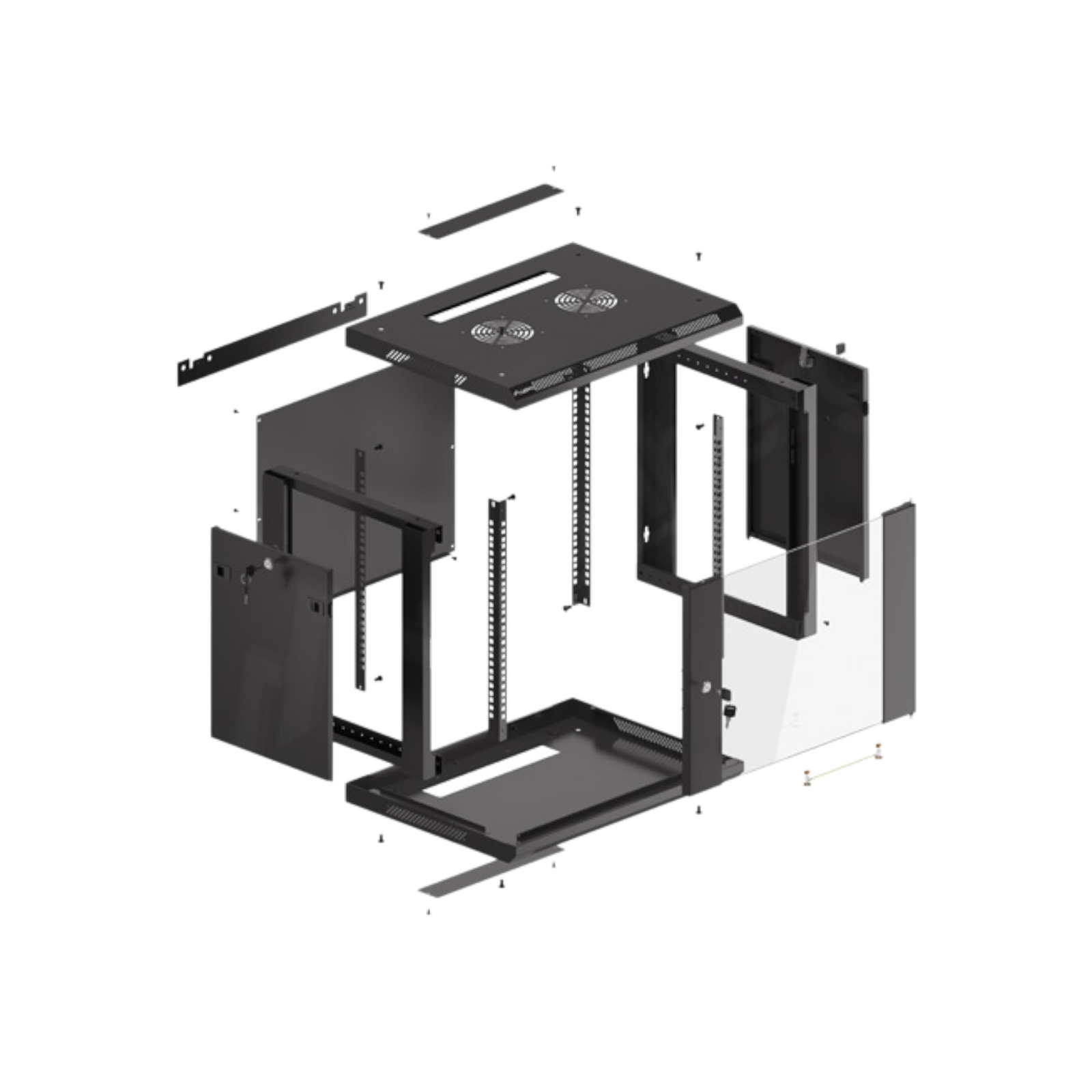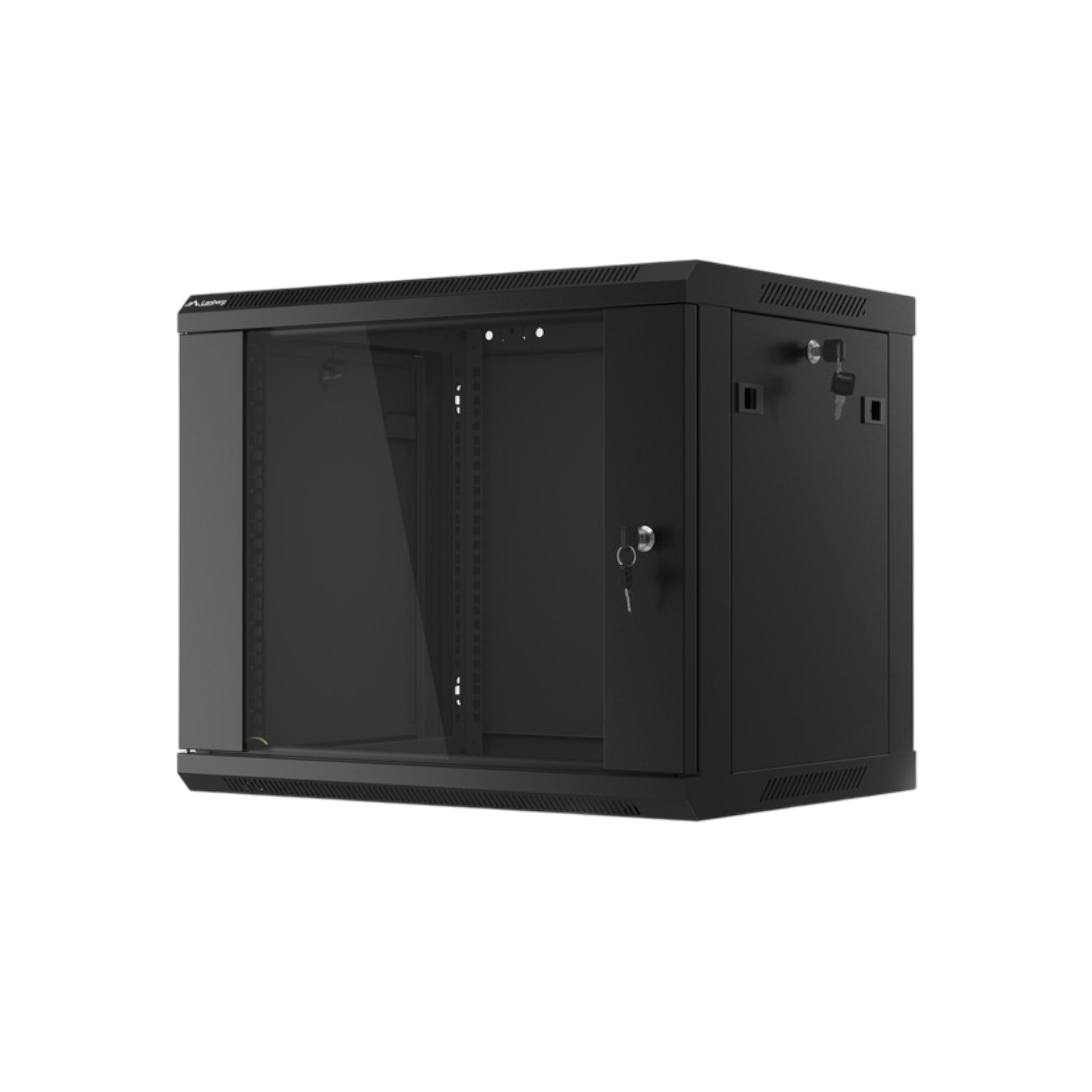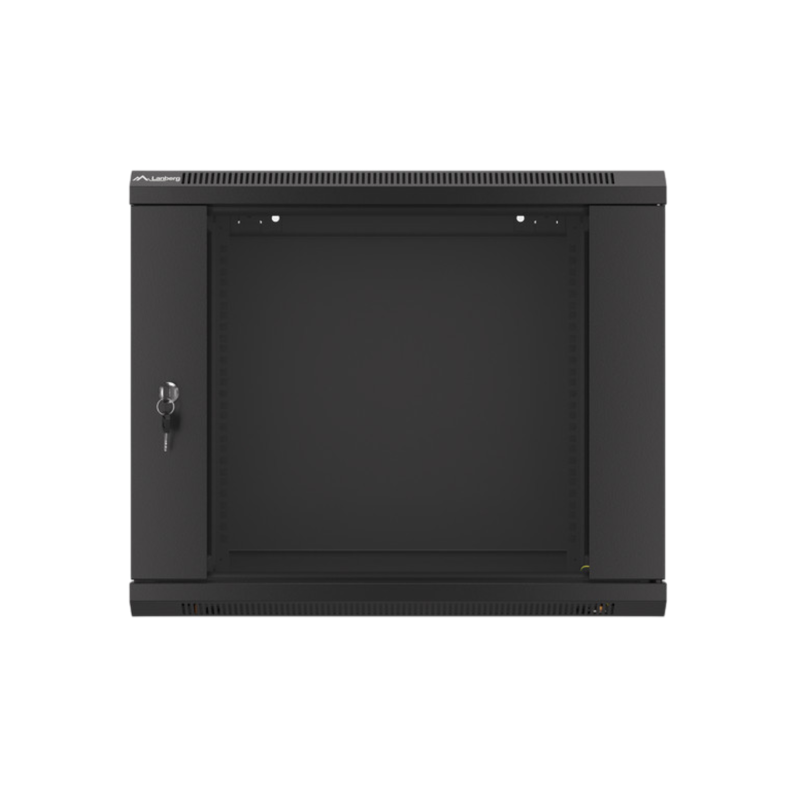 Szafa rack Lanberg 19" 9U 600x450 mm to solidna konstrukcja w czarnym kolorze do montażu sprzętu IT. Wyposażona w przeszklone drzwi z zamkiem, zdejmowane panele boczne i otwory na wentylatory, zapewnia bezpieczeństwo i wygodę instalacji. Maksymalne obciążenie wynosi 60 kg, a kompaktowe wymiary pozwalają na montaż ścienny w różnych miejscach.