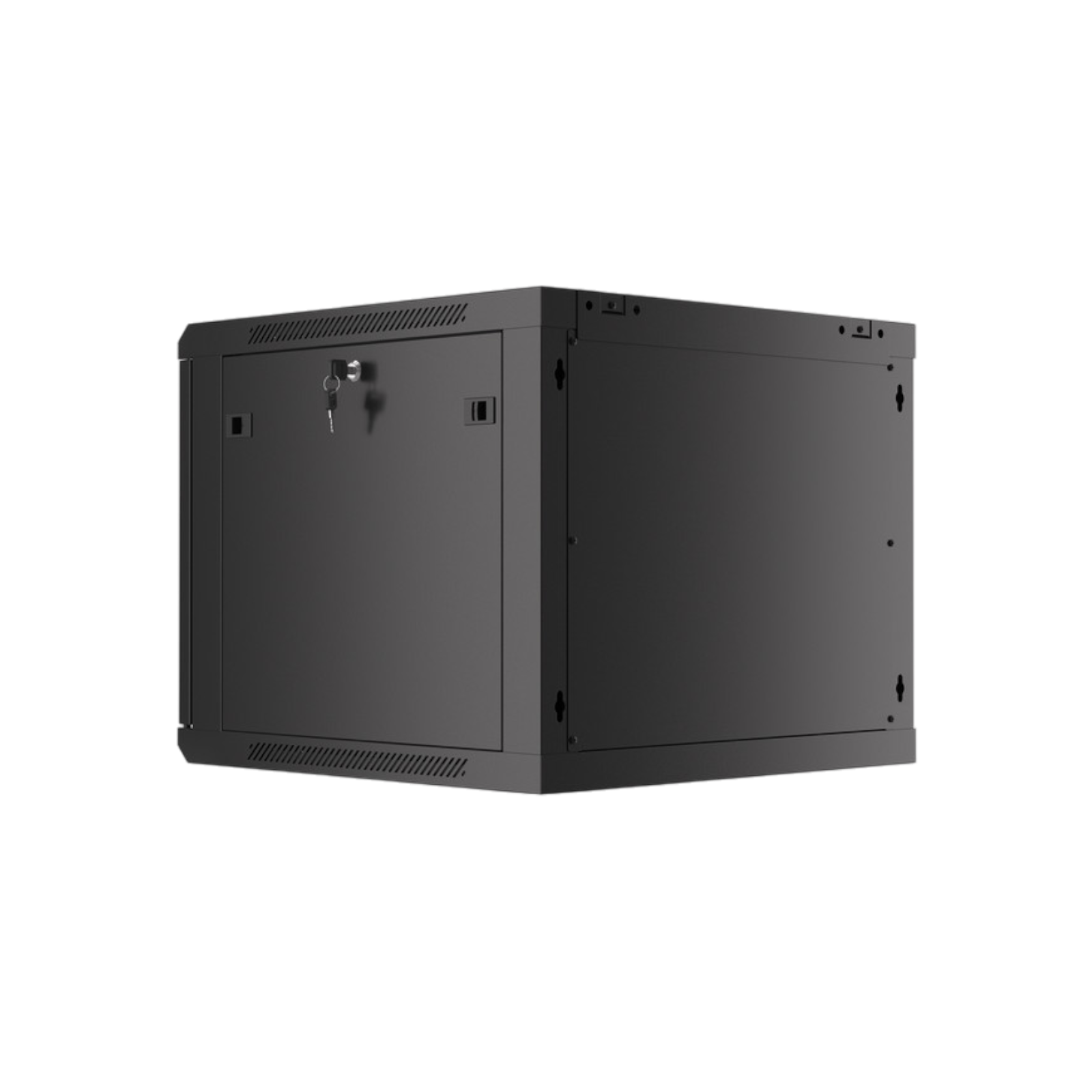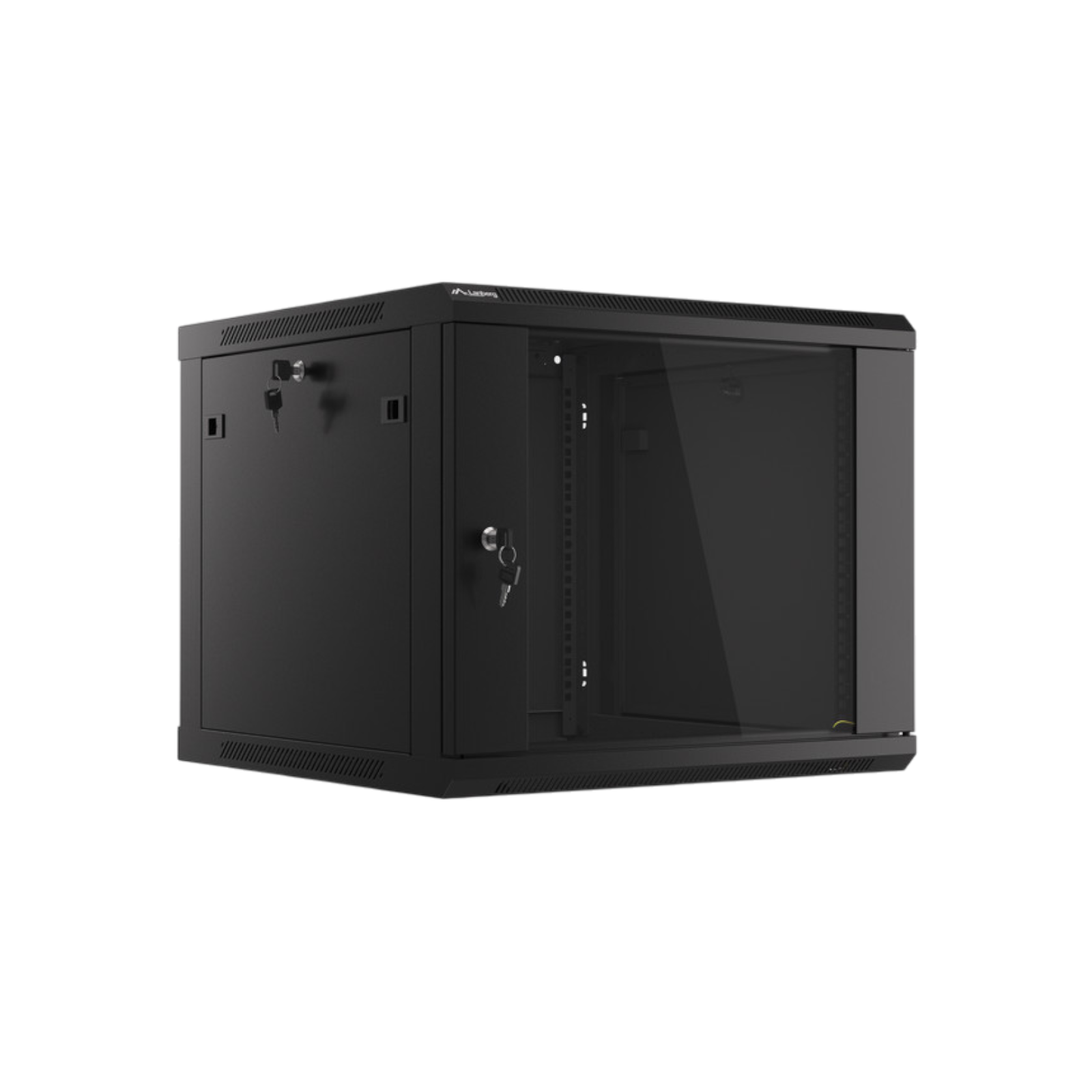 Szafa rack Lanberg 19" 9U 600x600 mm w kolorze czarnym to solidne rozwiązanie do montażu sprzętu IT. Przeszklone drzwi z zamkiem zapewniają bezpieczeństwo, a zdejmowane panele boczne ułatwiają serwis. Otwory wentylacyjne pozwalają na montaż wentylatorów, a nośność do 60 kg gwarantuje stabilność.