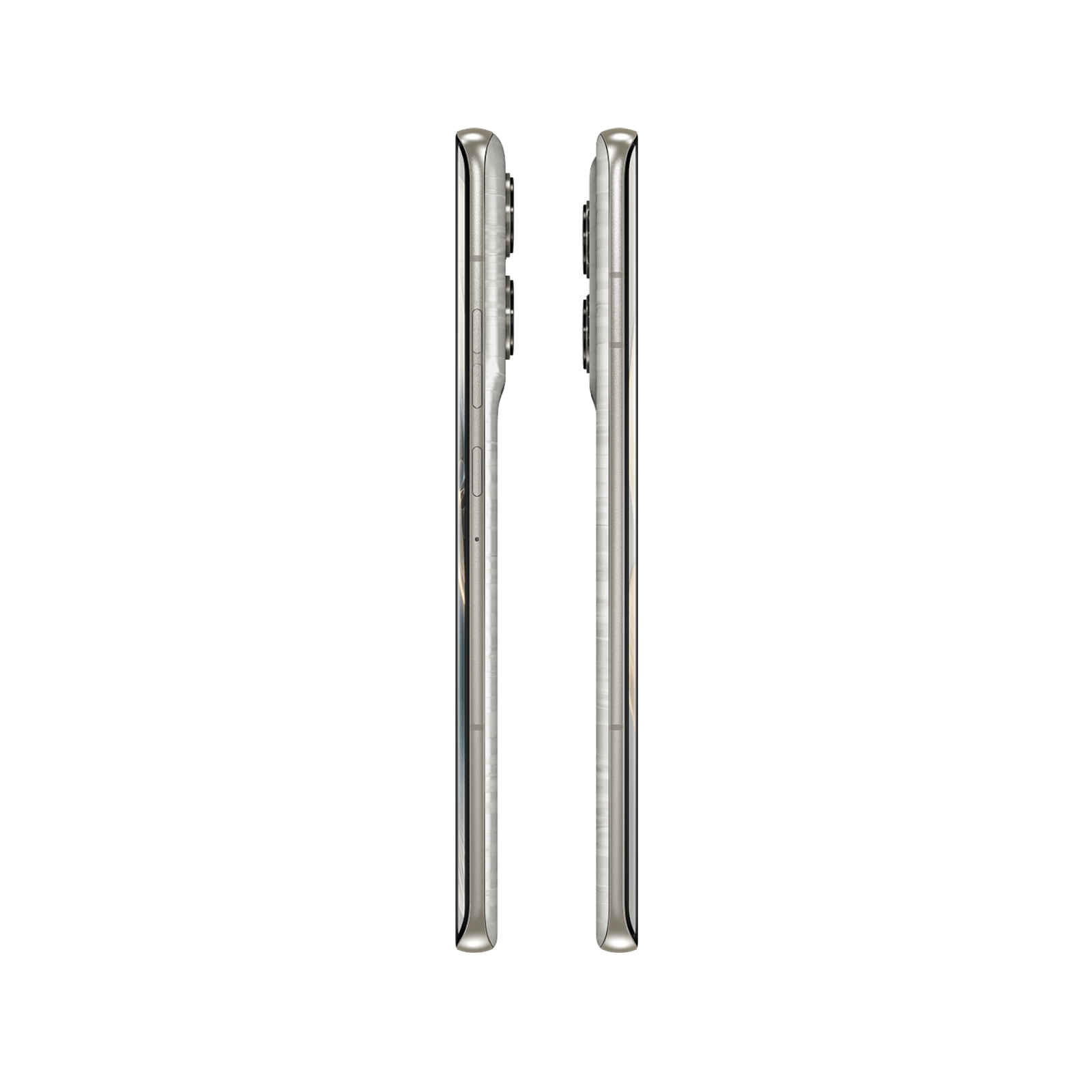 Delektuj się nowoczesną fakturą miękkiej wegańskiej skóry wzbogaconej piaskowanym aluminium na bokach urządzenia.
