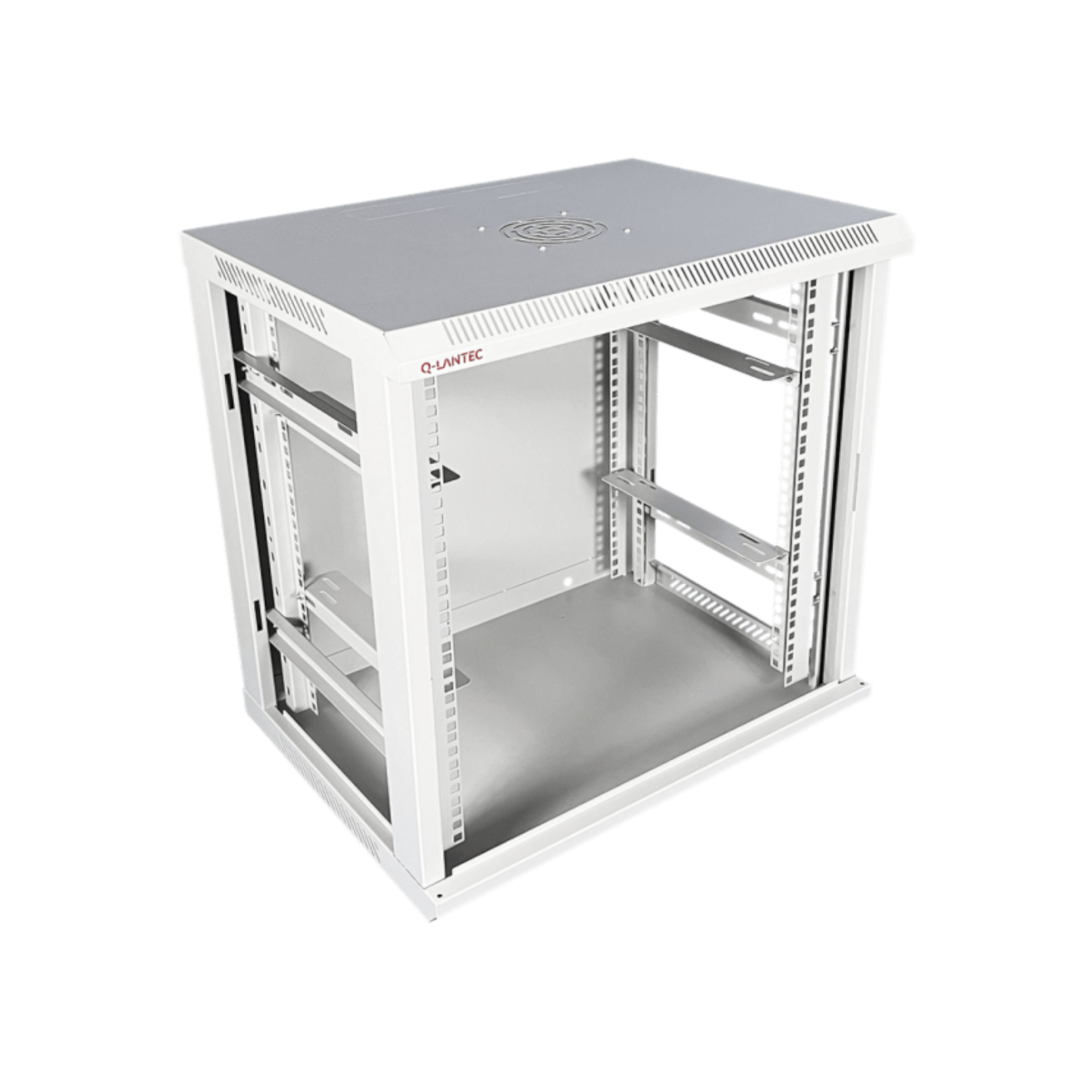 Q-LANTEC 19" 12U 600x450 mm to wisząca szafa rack w kolorze szarym, wykonana z trwałej stali. Wyposażona w przeszklone drzwi, zamykane osłony boczne i przepusty kablowe, zapewnia wygodny montaż i ochronę urządzeń w biurach, serwerowniach oraz systemach CCTV.