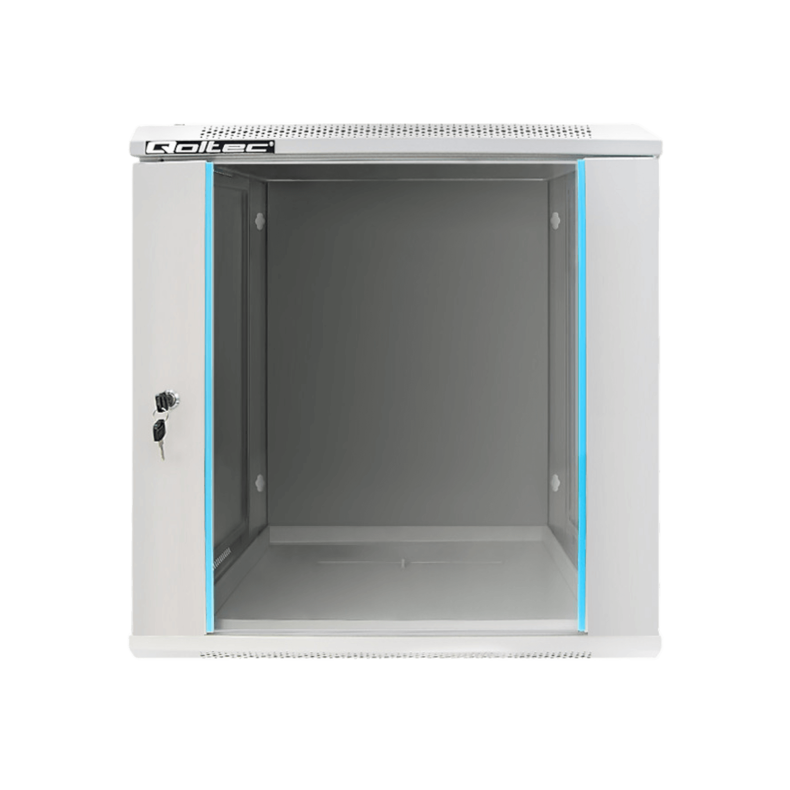 Szafa rack Qoltec 19" 12U 600x635x450mm wisząca Drzwi szklane Szary