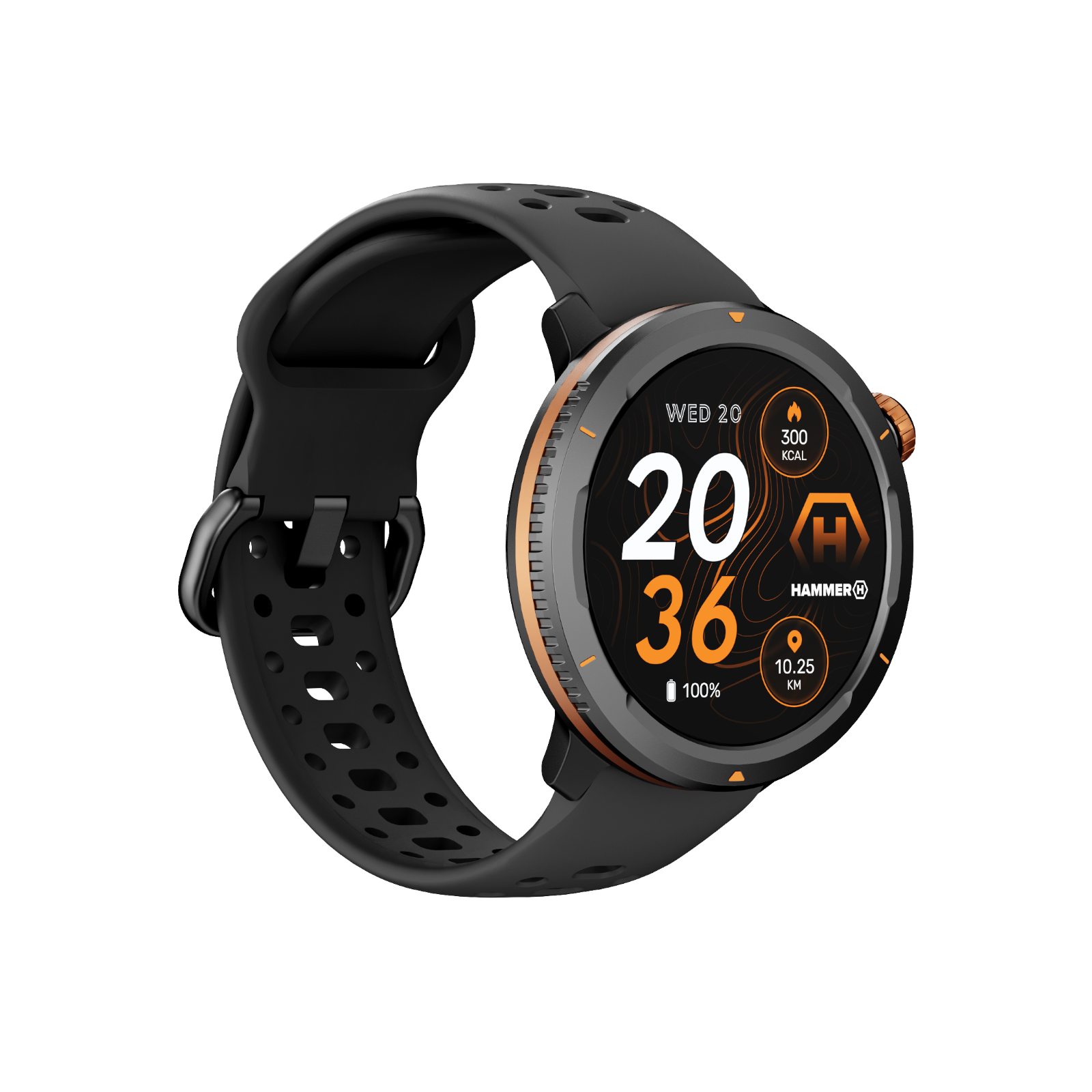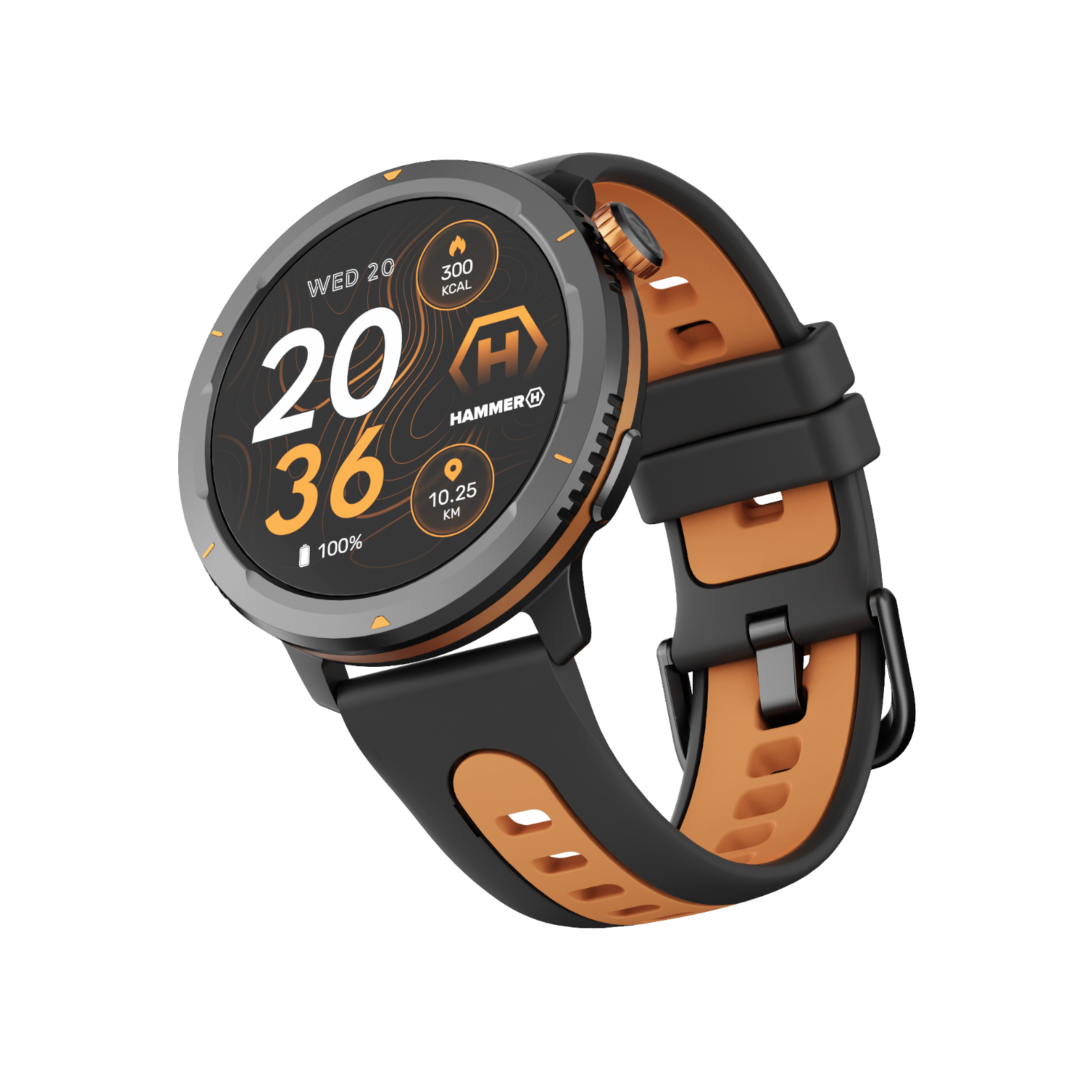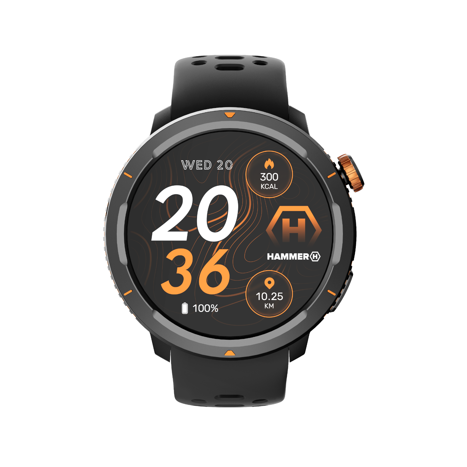 Zegarek HAMMER poradzi sobie w każdych okolicznościach. Wszystko dzięki starannie dobranym komponentom z których został wykonany. Aluminiowy bezel z domieszką włókna szklanego oraz Panda Glass gwarantują ochronę ekranu, a wzmocniona koperta zapewnia odporność na uderzenia oraz zachlapania. Wzmocnioną odporność uzupełnia połączenie czerni i pomarańczy, składające się na iście hammerowy design.
