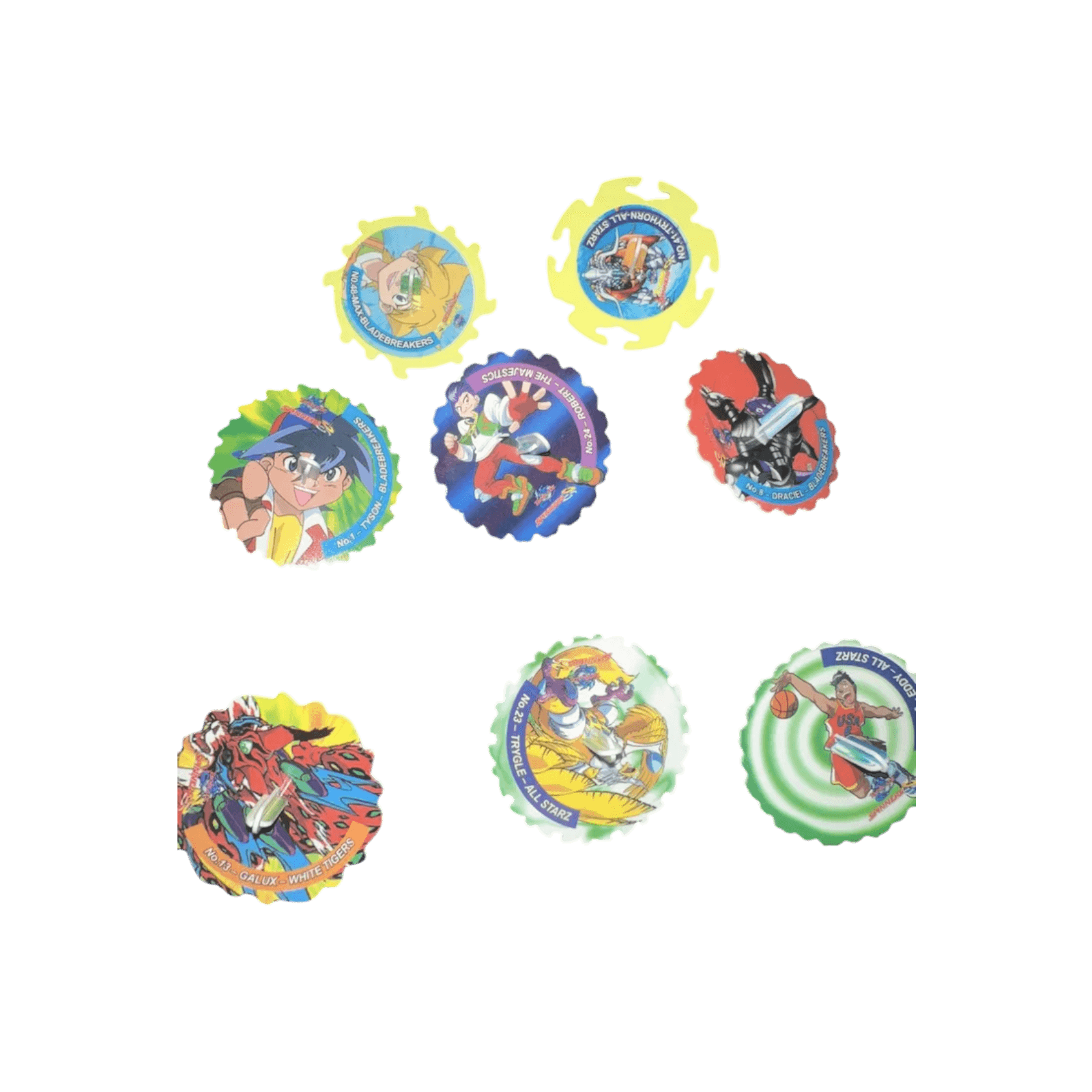 Tazos spinery Beyblade dołączane do chipsów Lay’s i Cheetos były prawdziwym hitem wśród dzieci. Inspirowane bajką Beyblade, pozwalały odtwarzać pojedynki znane z ekranu. Zbieranie i wymienianie ich stało się szkolną pasją, a w latach 90. były jedną z najchętniej poszukiwanych atrakcji w paczkach czipsów.