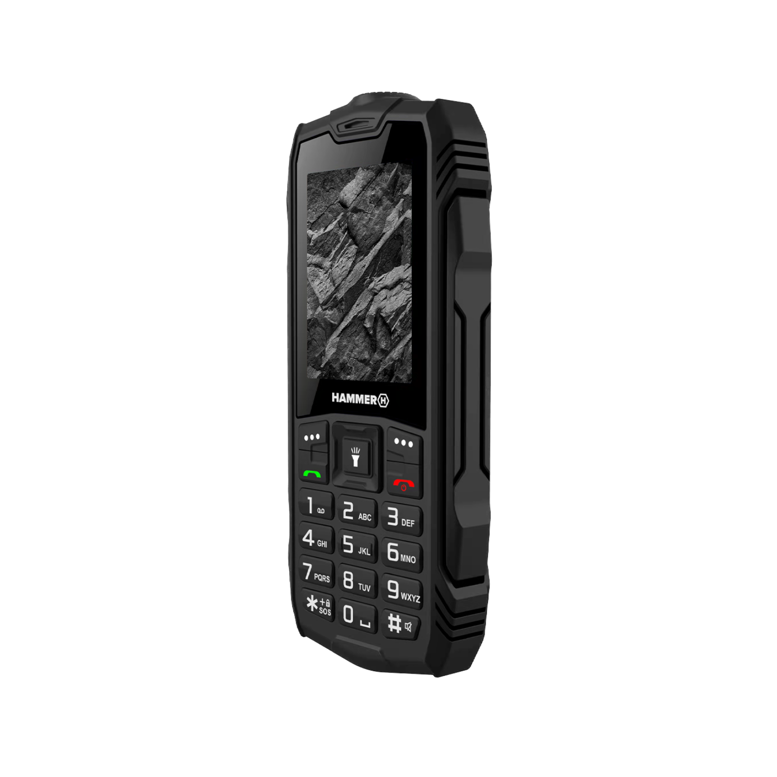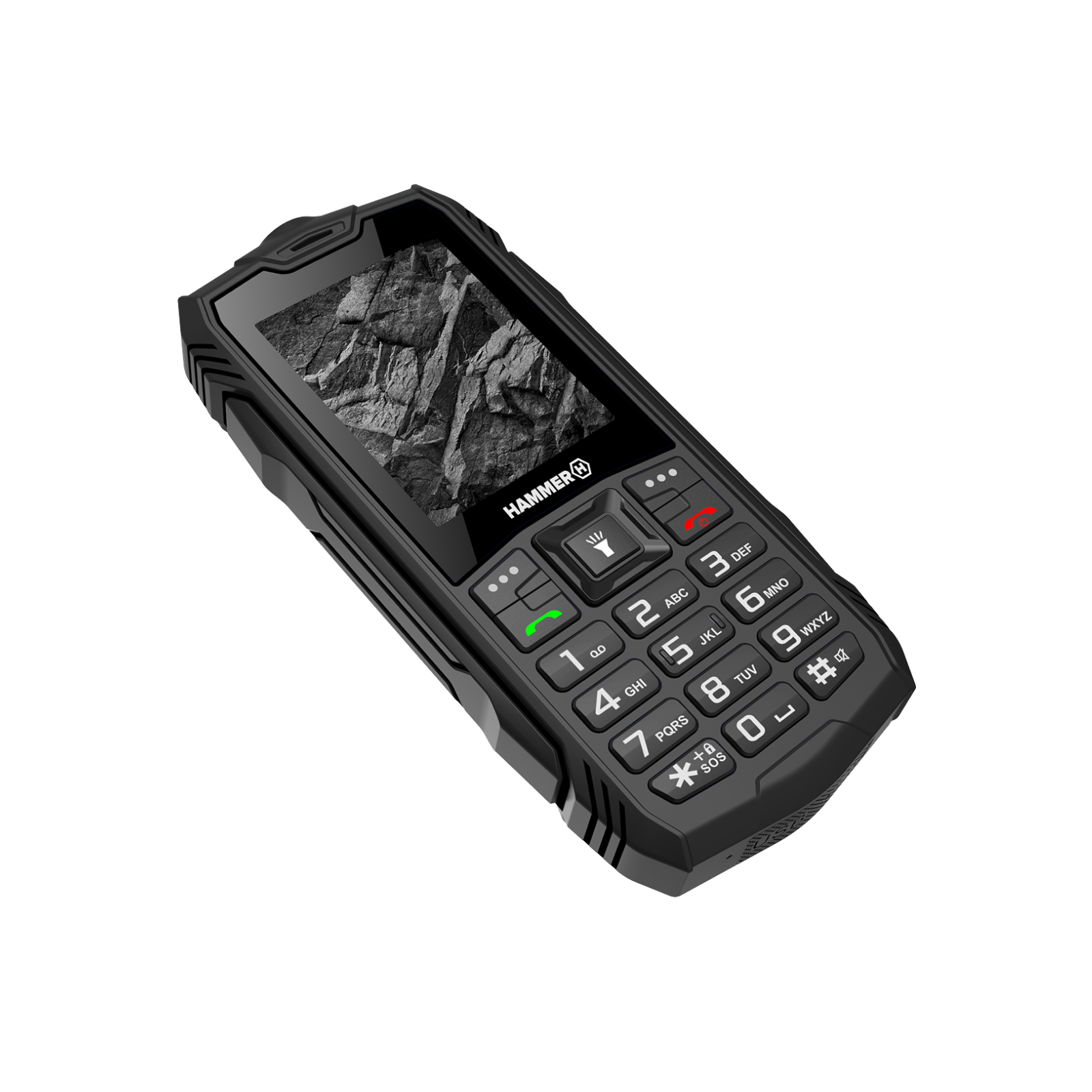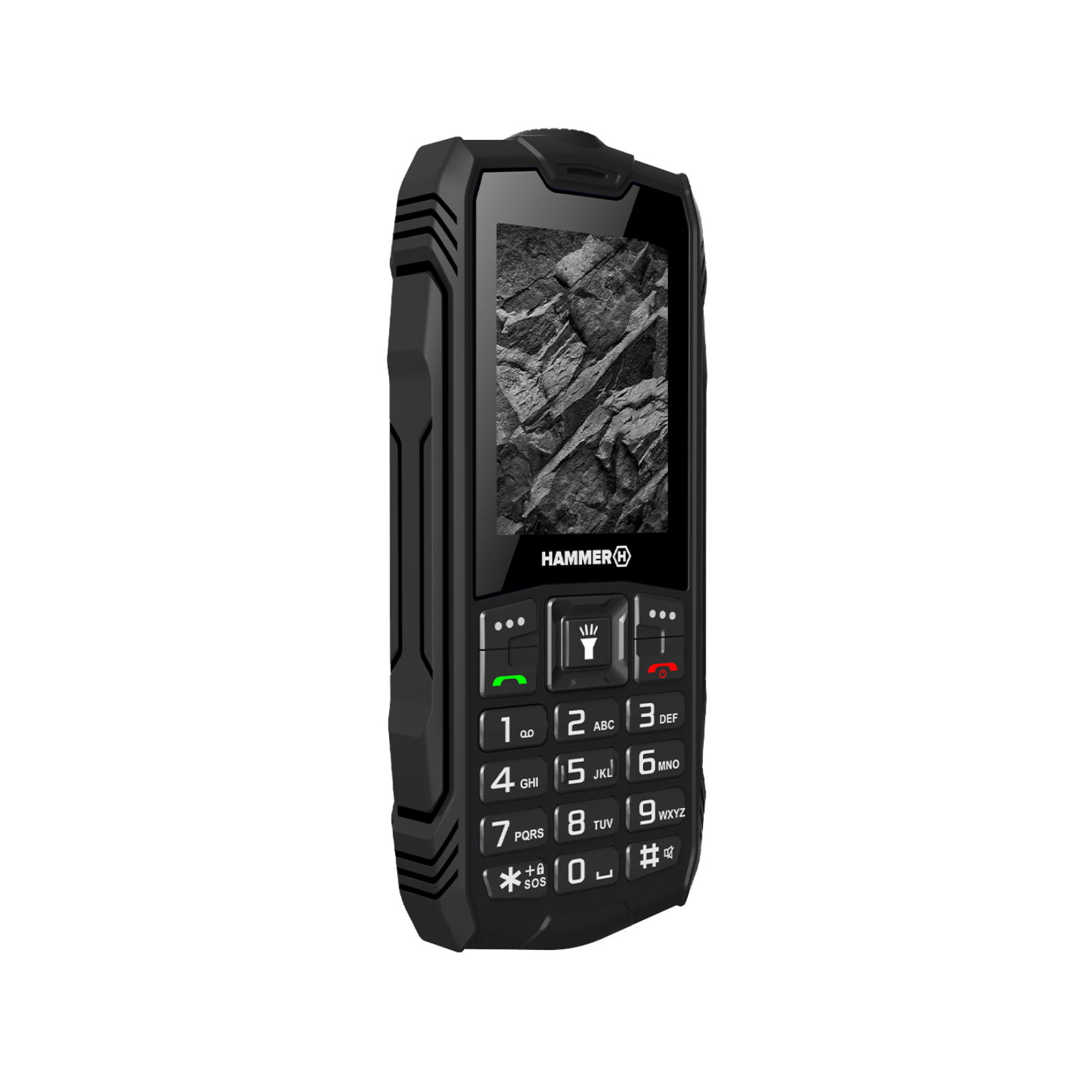 HAMMER Rock ma zwartą, mocną konstrukcję. Jest jak skała, a duży ekran 2,4” zapewnia odpowiednią czytelność i dobrej jakości. Jednocześnie jest poręczny i mieści się dobrze w każdej kieszeni.