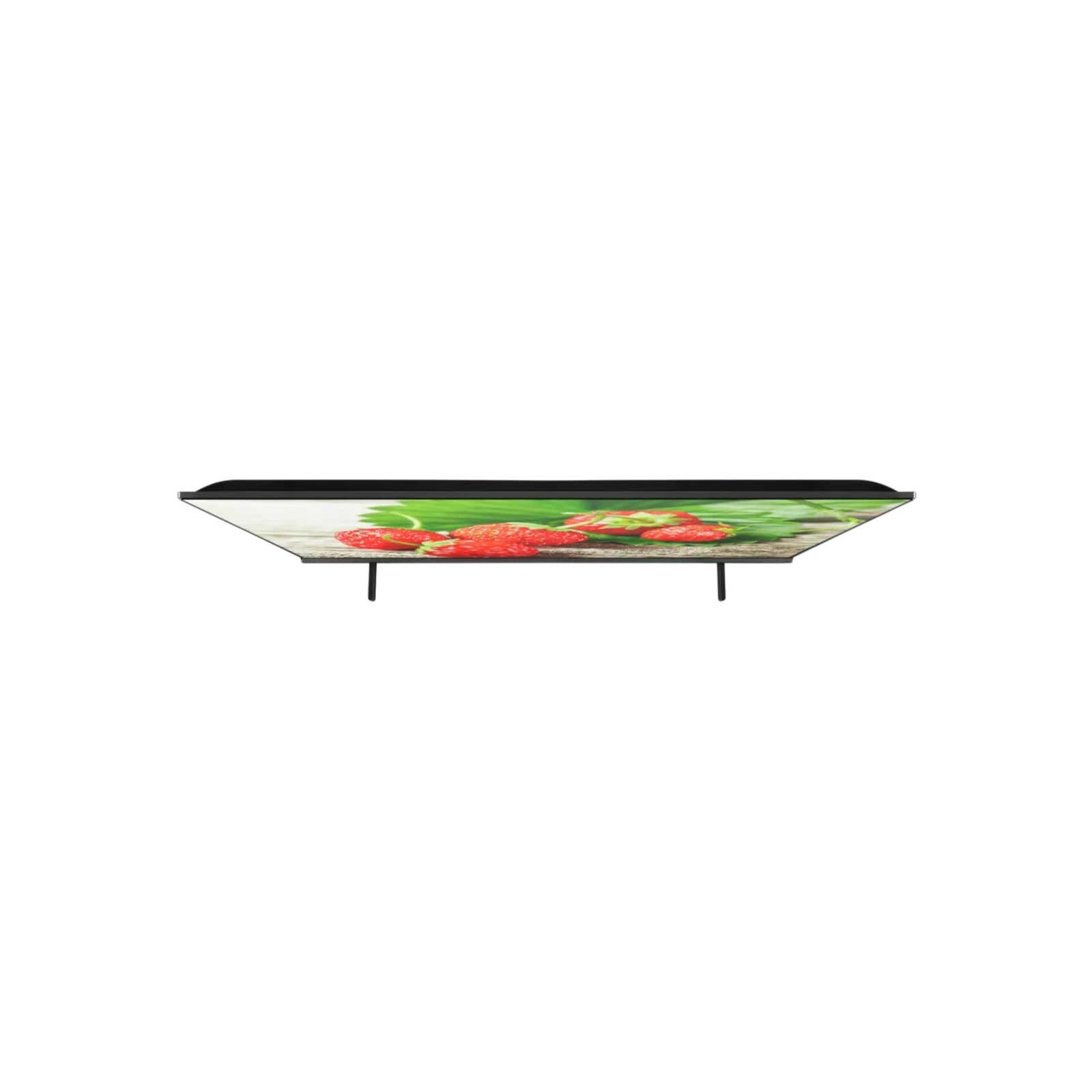 Telewizor zachwyca nowoczesnym, bezramkowym wzornictwem i stylową czernią obudowy, które nadają mu wyjątkowy wygląd. Jego minimalistyczny design harmonijnie wpasuje się w dowolne wnętrze, dodając przestrzeni elegancji i nowoczesnego charakteru.