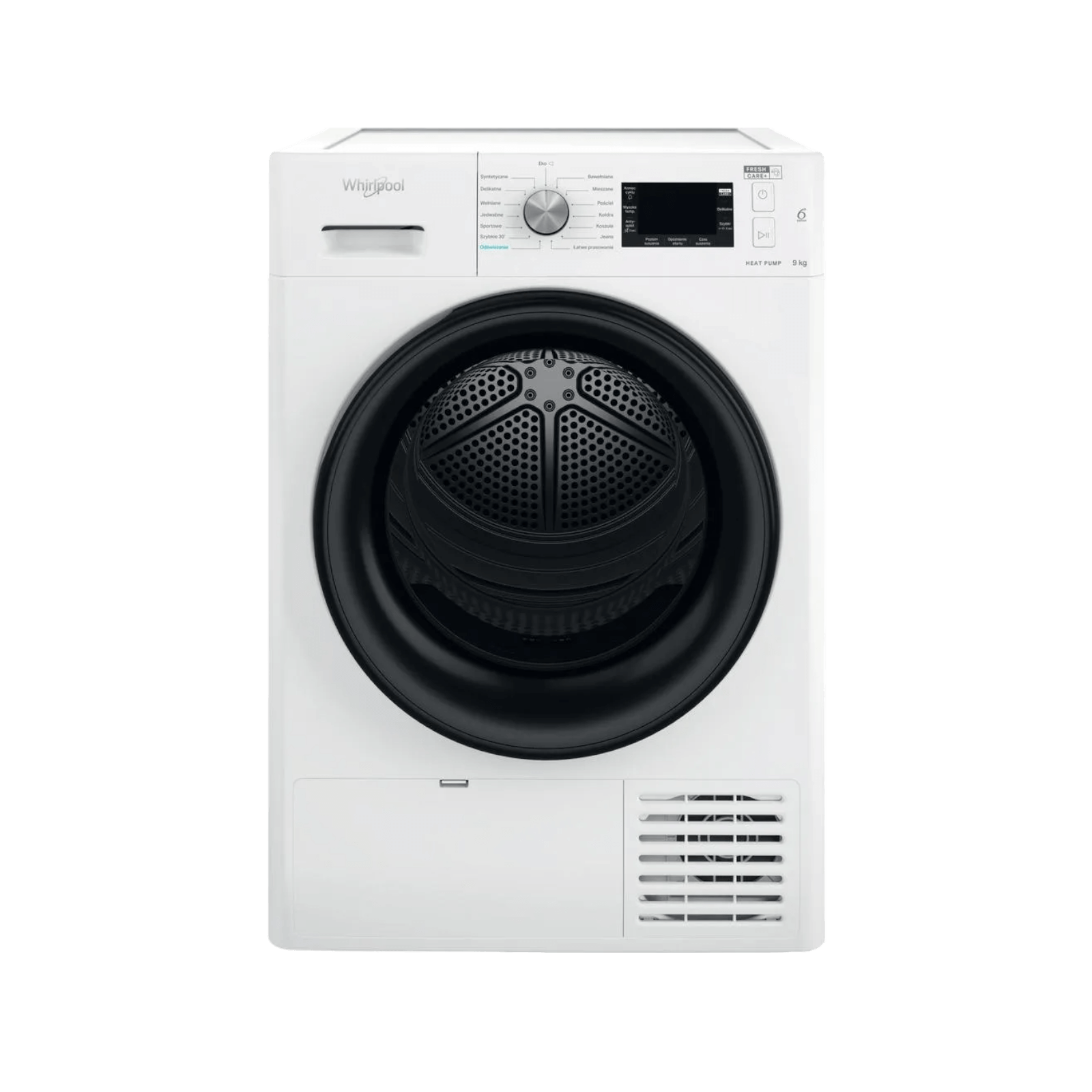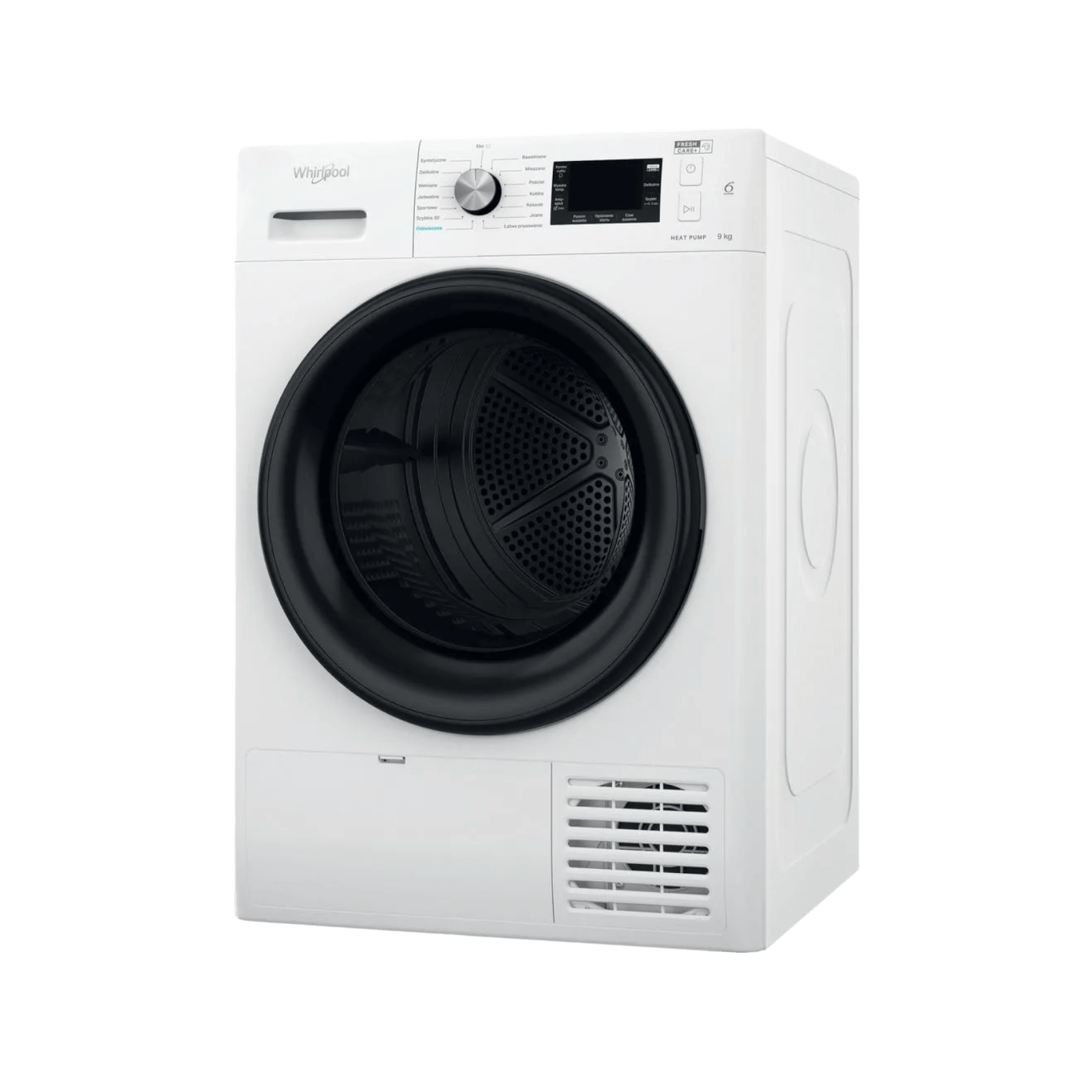 Whirlpool FFT M22 9X2B PL to suszarka z pompą ciepła o pojemności 9 kg i klasie A++. Technologia 6. Zmysł dostosowuje parametry suszenia, a funkcja FreshCare+ chroni świeżość ubrań do 6 godzin po zakończeniu cyklu. Model oferuje cichą, energooszczędną i skuteczną pracę.
